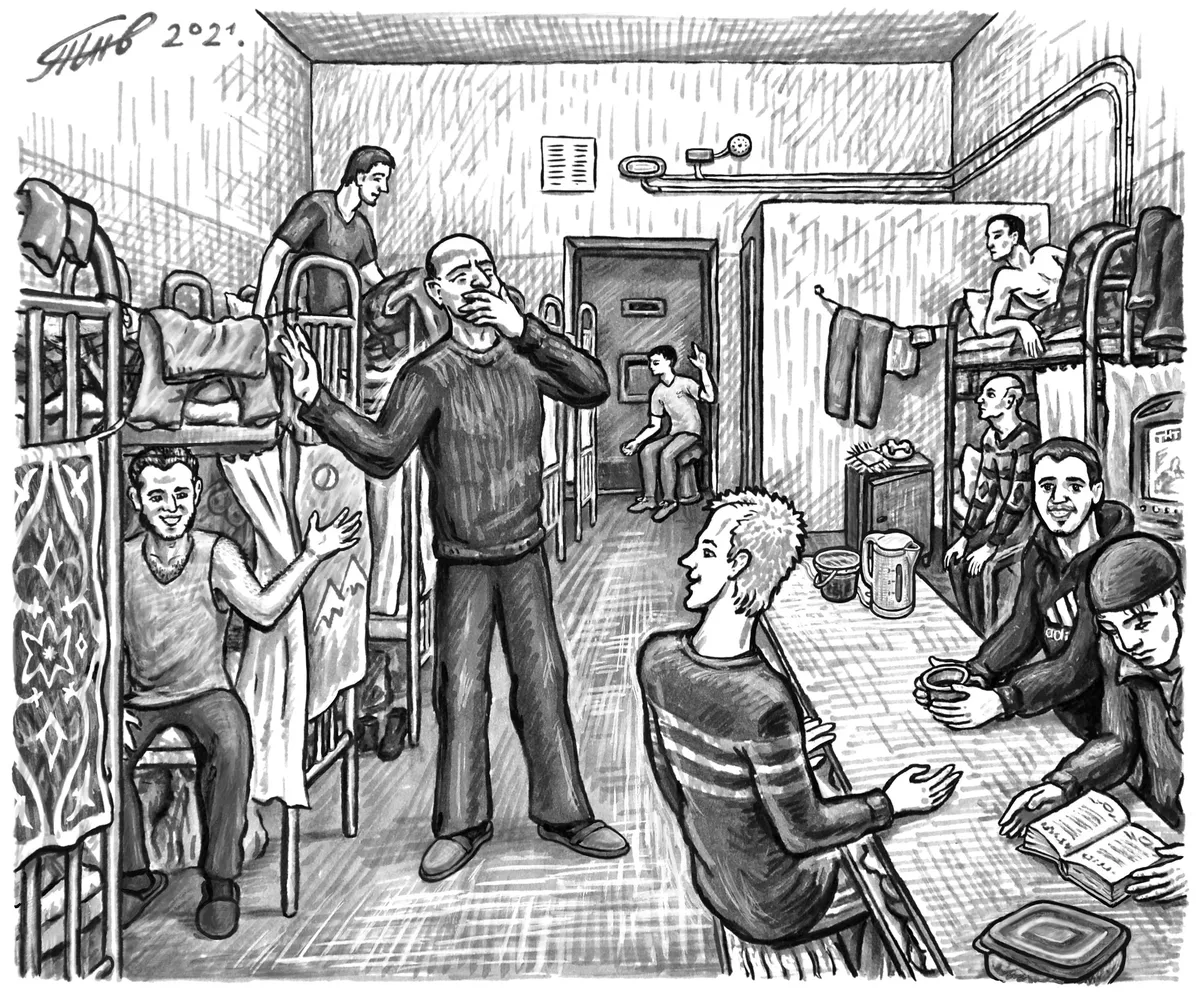 «Новая газета. Европа» продолжает публиковать главы из книги бывшего политического заключенного Ивана Асташина «Путешествие по местам лишения». Асташин — фигурант одного из первых «придуманных» спецслужбами дел о молодых террористах. В 2012 году его, 20-летнего студента, приговорили к 13 годам строгого режима. За три года до этого Иван с «подельниками» поджег подоконник и несколько стульев в отделе ФСБ на «день чекиста». Тогда никто не пострадал, но спецслужбы раздули поджог до дела «Автономной боевой террористической организации». Из назначенных 13 лет Иван отбыл почти 10 — в том числе в ИК-17 Красноярского края и Норильлаге.Он вышел на свободу только в сентябре 2020 года, но и на этом зона не закончилась — политзеку назначили 8 лет административного надзора с запретом выходить из дома по ночам. «Это хуже условного срока», — говорит он сам.