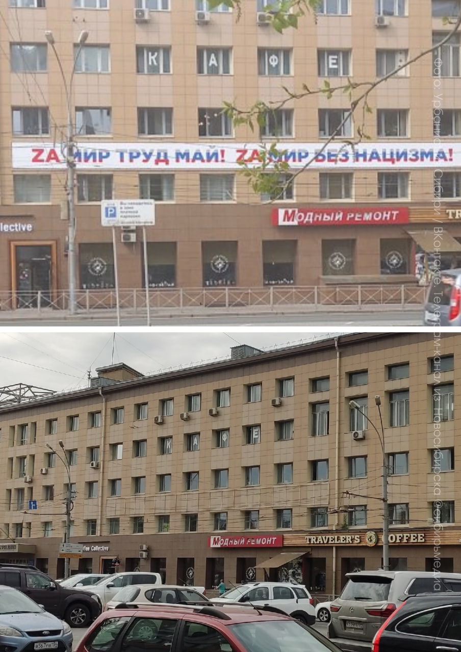 Школьник, обвиненный ранее в распространении ложной информации о российской армии за репост в чат телеграм-канала, регулярно извещает мэрию о нарушениях в установке вывесок и баннеров. В мае он пожаловался на вывеску "ZА МИР ТРУД МАЙ!", которая появилась на Красном проспекте в центре Новосибирска.