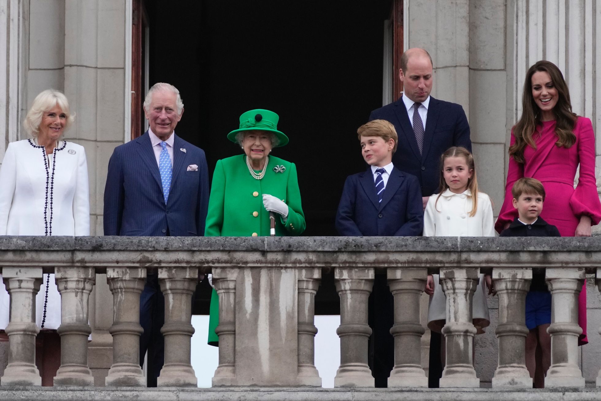Королева Елизавета II вышла на балкон Букингемского дворца в последний день торжеств в честь 70-летия своего правления. Фотография
