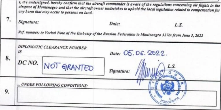 Novosti has published a scan of the respective document signed by the Montenegrin authorities.