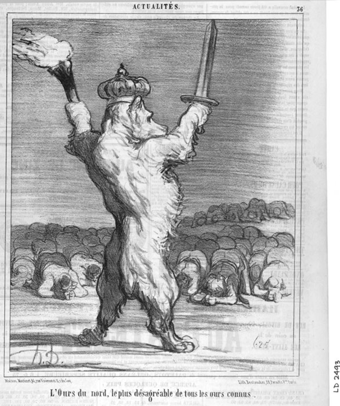 Карикатура на Россию, изображенную в образе коронованного медведя.