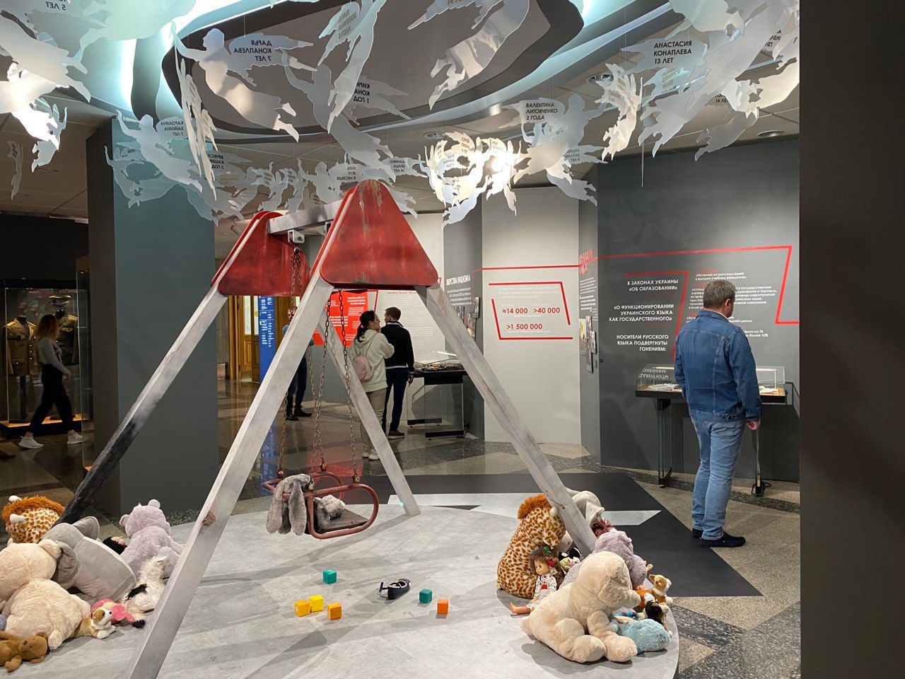 The exhibition concludes with words about the “forced measure” (Kremlin parlance for Russia’s full-scale invasion of Ukraine): “On February 24, 2022, Russia launched a special military operation to demilitarize and denazify Ukraine. President Vladimir Putin explained that the goal [of this operation] was to ‘defend people who have endured abuse and genocide perpetrated by Kyiv’s regime for eight years’.”