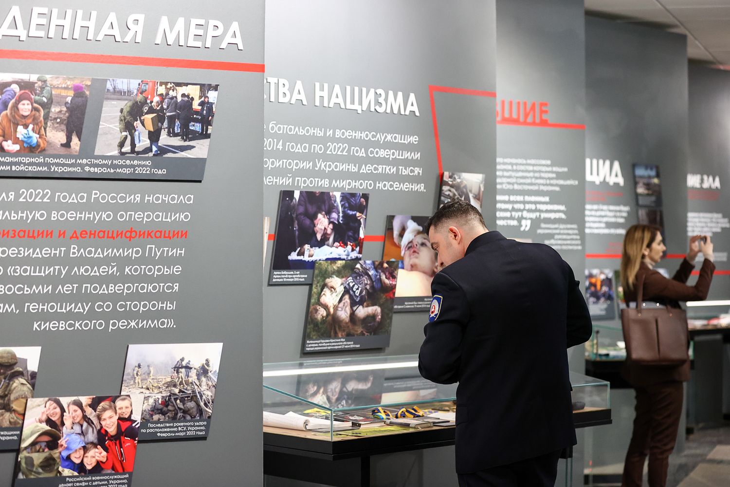“More than 200 exhibits tell about the atrocities of Ukrainian nationalists during the Second World War, as well as about the mass crimes and terror of modern neo-Nazis against the inhabitants of Ukraine in 2014–2022. The exhibition materials will show the inextricable link between the Organization of Ukrainian Nationalists (OUN), which participated in the extermination of civilians during the war, and modern nationalist organizations in Ukraine that revived the ideology of Nazi Germany.”