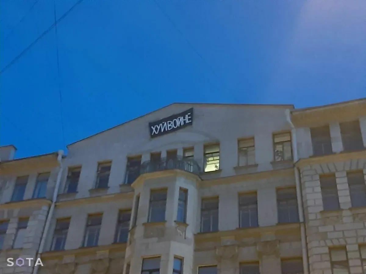 В Петербурге задержали трех человек из-за антивоенного баннера, появившегося на здании на улице Восстания
