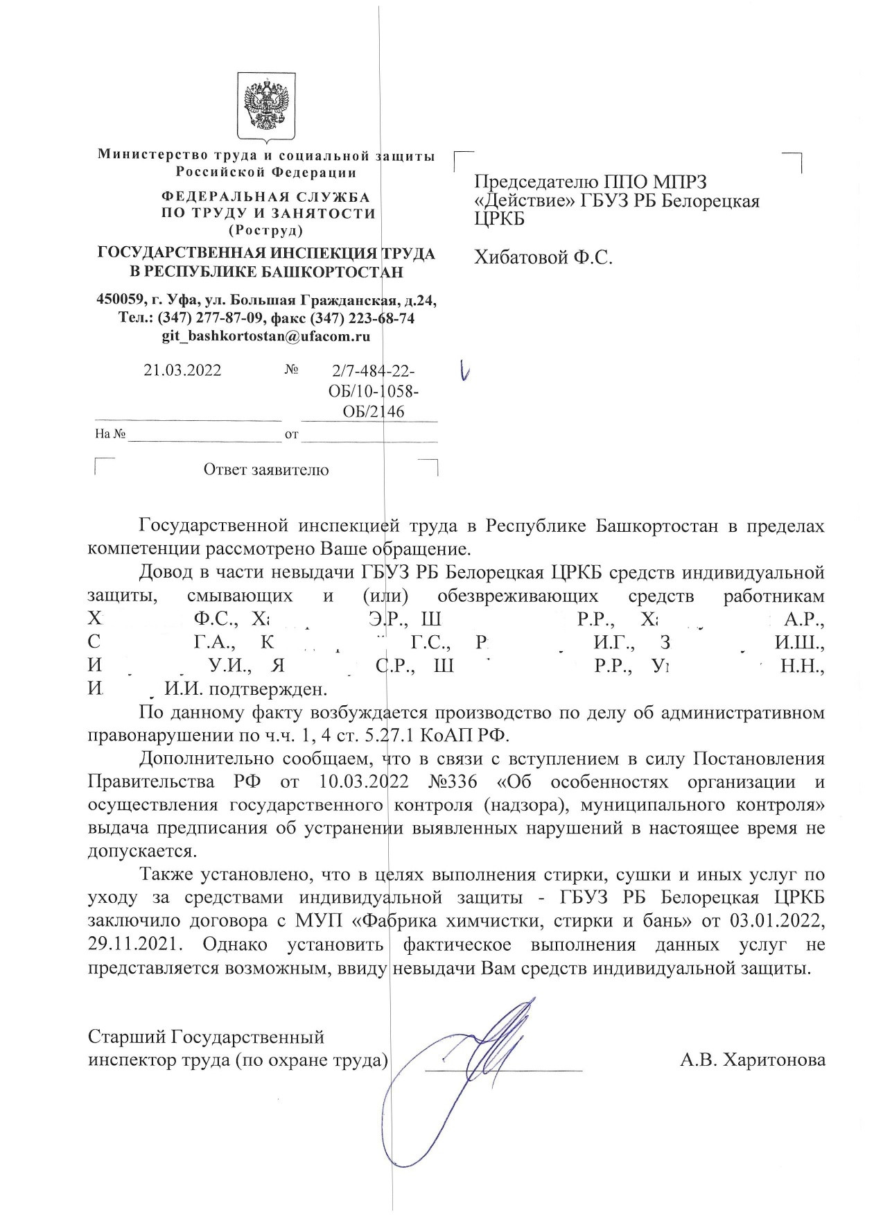 После этого отказа работники были вынуждены обратиться туда, где за соблюдением законодательства следят - в Гострудинспекция в Республике Башкортостан. Соответственно, уже Гострудинспекция напомнила работодателю о том, что в правовом государстве законы необходимо соблюдать. А дальше уже были проведены закупочные процедуры, и вот - новая форма получена! Для всех интересующихся - все ссылки на правовые нормы указаны в обращениях. Работодатель ОБЯЗАН обеспечивать медицинских работников формой и СИЗ в соответствии с утвержденными Минздравом нормативами.