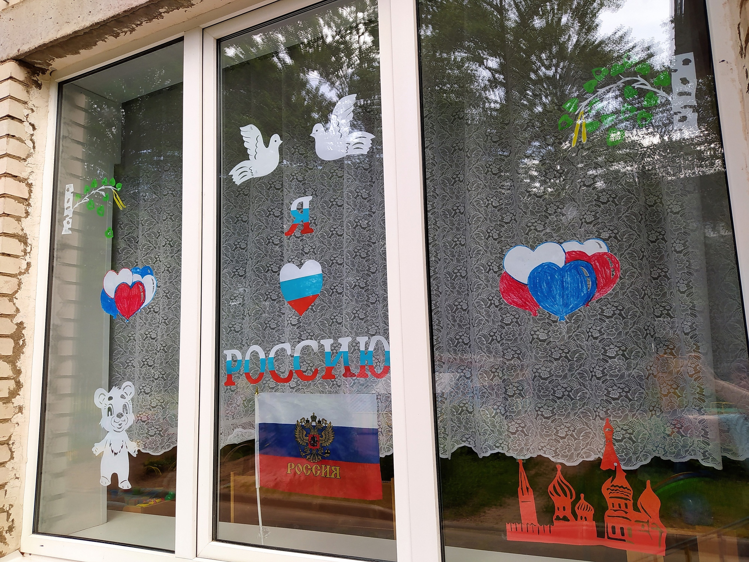 Дети танцуют под Газманова, рисуют триколоры и клеят на окна изображения голубей