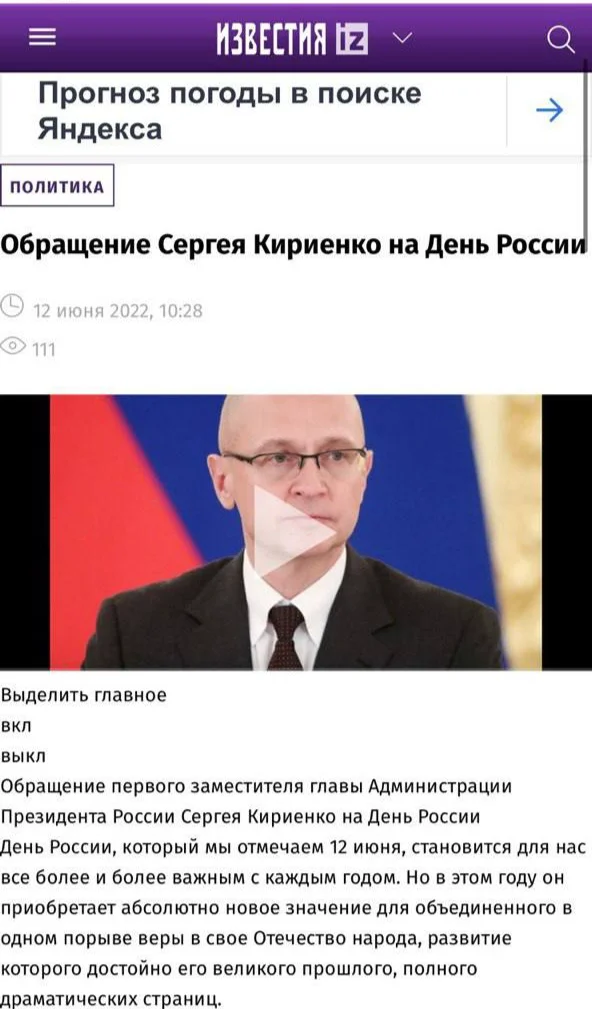 Сайт «Известий» заявил о хакерской атаке. Обращение Кириенко в честь Дня России оказалось фейком