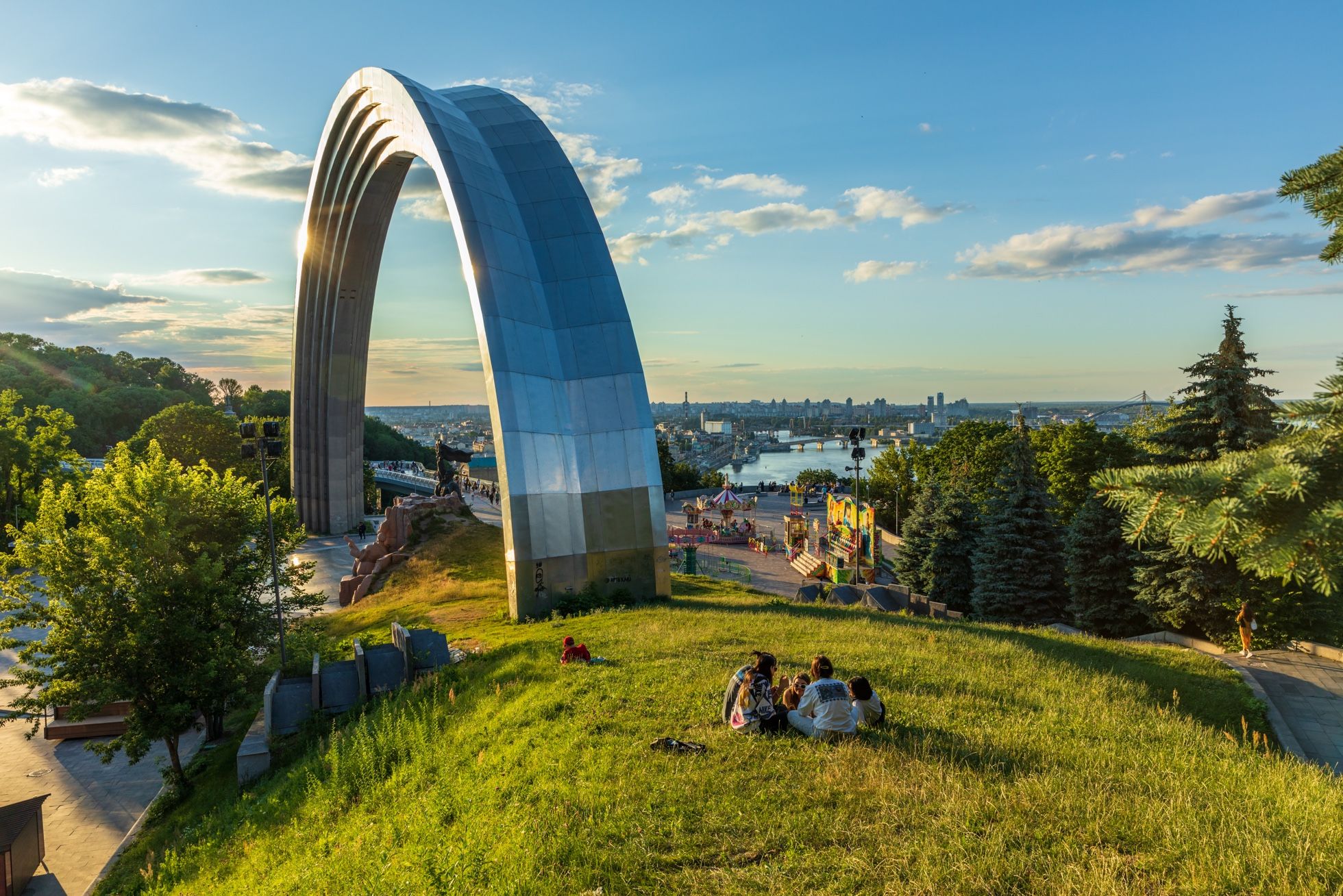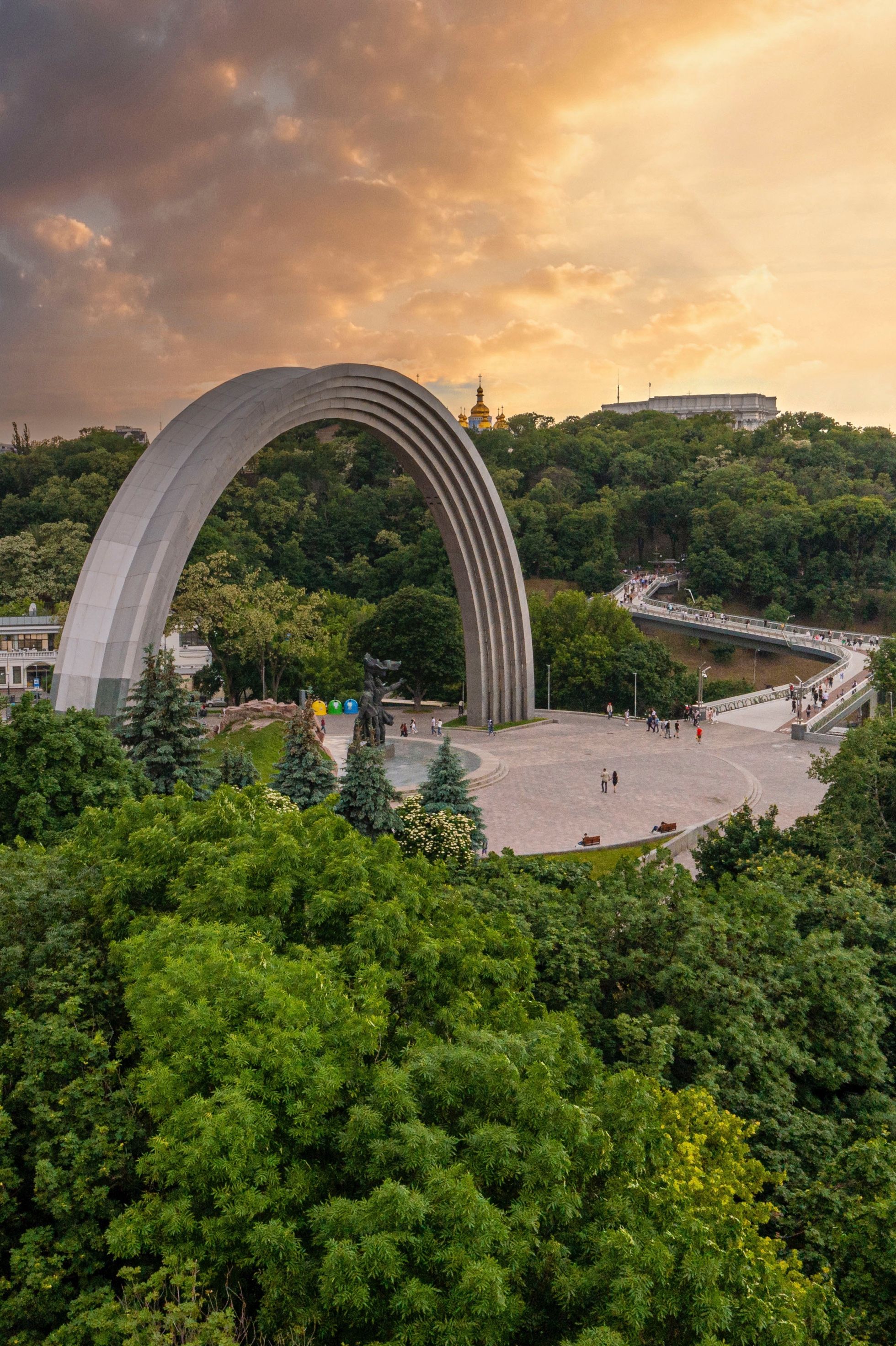 The Arch of Freedom of the Ukrainian people is located right in the center of Kyiv, just a 10 minute walk from Independence Square. Until May 2022, this massive titanium structure, which stands 35 meters (about 115 feet) tall at its highest point, was known as the Peoples’ Friendship Arch.