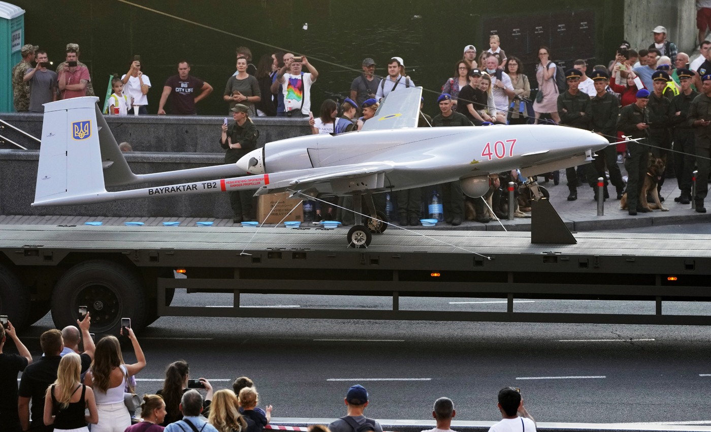 Беспилотник «Байрактар ТБ-2» во время репетиции военного парада, посвященного Дню независимости, в Киеве. Фото: Efrem Lukatsky / AP