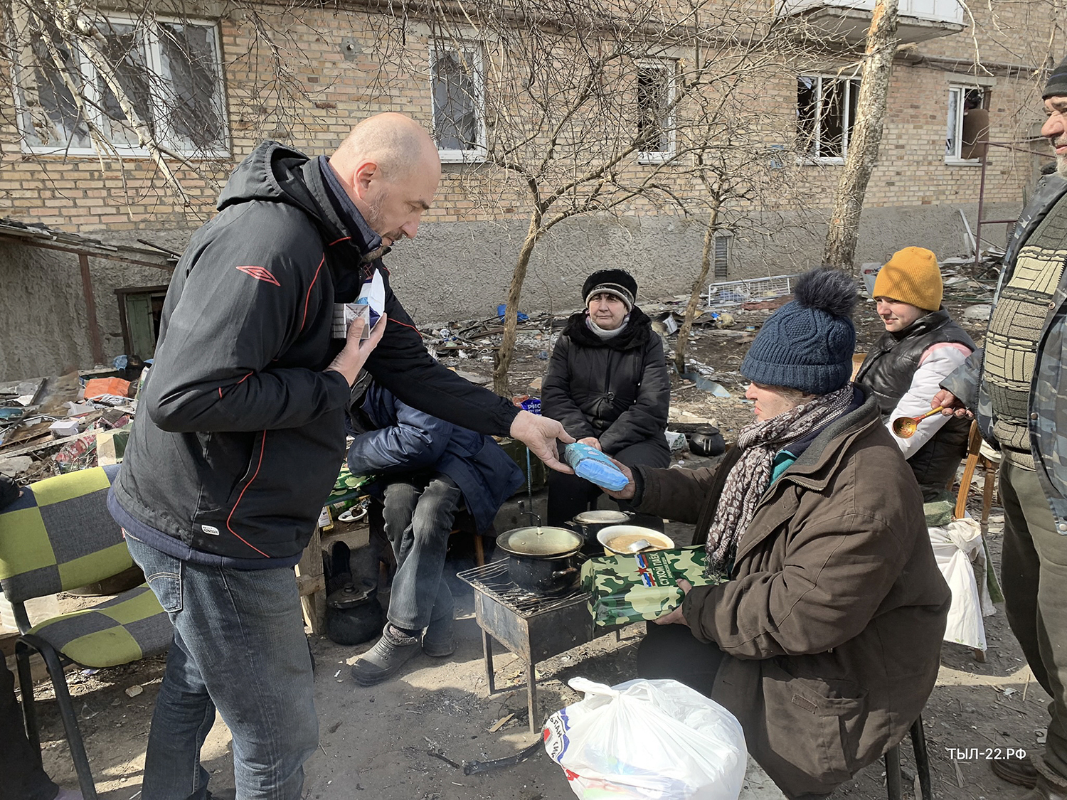На вопрос, помогает ли «Тыл» всем местным жителям или только тем, кто поддерживает Россию, Тимур говорит: «Всем. Мы не спрашиваем у человека, за кого он, против кого».