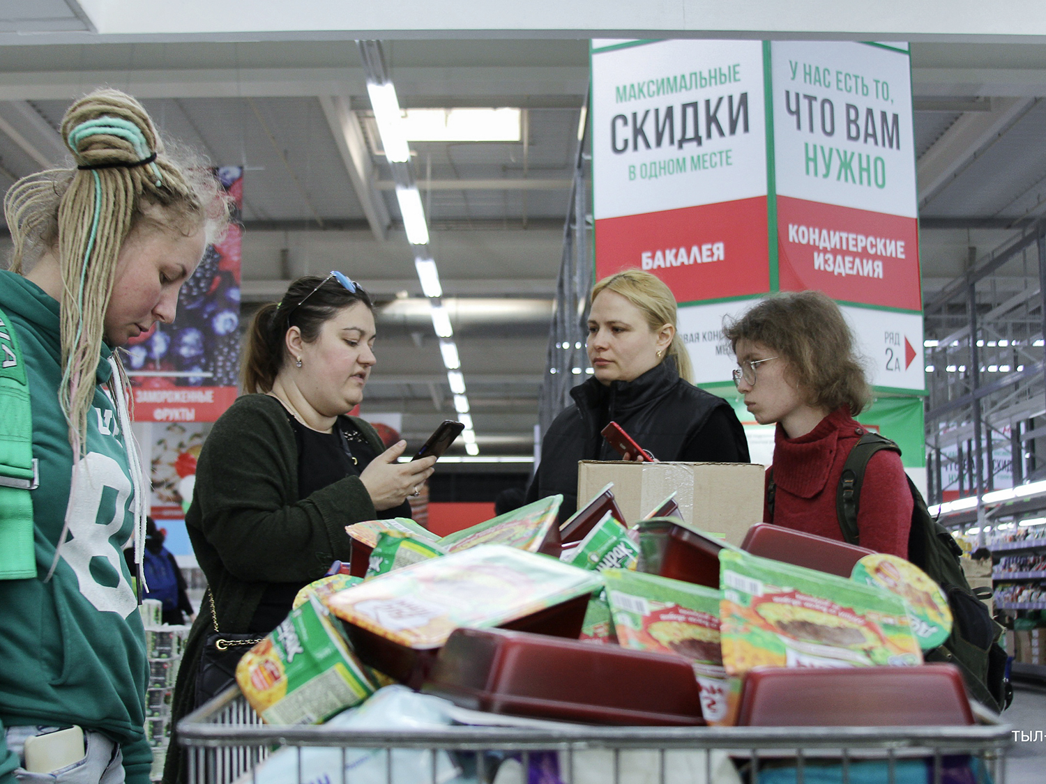 «Тыл» доставлял жителям Донбасса продуктовые наборы: с хлебом, крупами, маслом, тушенкой, а также предметы первой необходимости: женские прокладки, подгузники для детей, влажные салфетки.