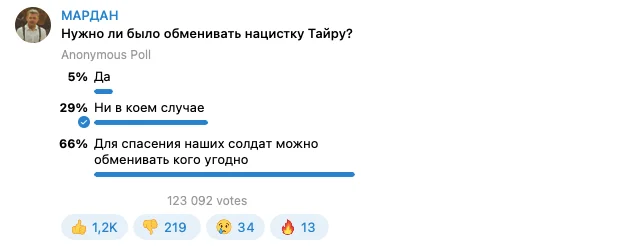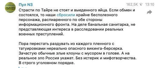 Телеграм-канал ASTRA обратил внимание, что в воскресенье вечером телеграм-каналы, выступающие за «спецоперацию», выпустили посты о том, что Паевская — вовсе не боец «Азова», а обычный медик. Телеграм-канал «Пул №3» назвал бывшую военнопленную «банальной санитаркой, не представляющей интереса в расследовании реальных военных преступлений». А в утреннем эфире «Комсомольской правды», который провел Сергей Мардан в понедельник, эксперты поругали корреспондентку Куксенкову, сообщившую о «коррупционной схеме», и насмехнулись над ее источниками. Мардан заявил, что широкая российская общественность начала критиковать обмен «Тайры» после слов Зеленского о том, что это для Украины это победа. Он задал вопрос, а чем Паевская настолько известна, а его собеседник Владлен Татарский предположил, что все ее предполагаемые преступления — и вовсе «военные байки».