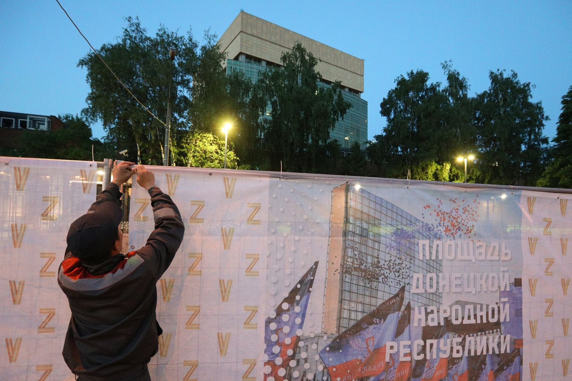 Для оформления площади ДНР в Москве использовали шрифт киевских дизайнеров, созданный в поддержку Украины