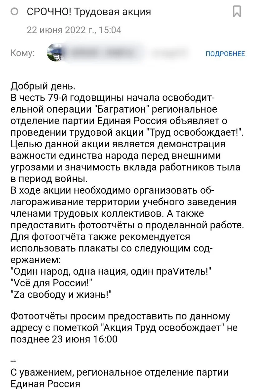 Белорусский активист представился единороссом и потребовал от школы в Клину провести акцию «Труд освобождает». Ее провели и прислали фотоотчет