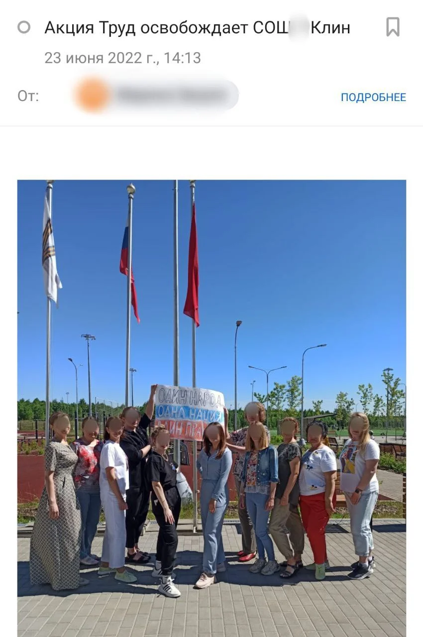 22 июня белорусский художник и бывший учитель Владислав Бохан написал письмо школе в Клину и потребовал провести акцию «Труд освобождает». На следующий день ему прислали фотоотчет, рассказал сам Бохан в телеграм-канале.