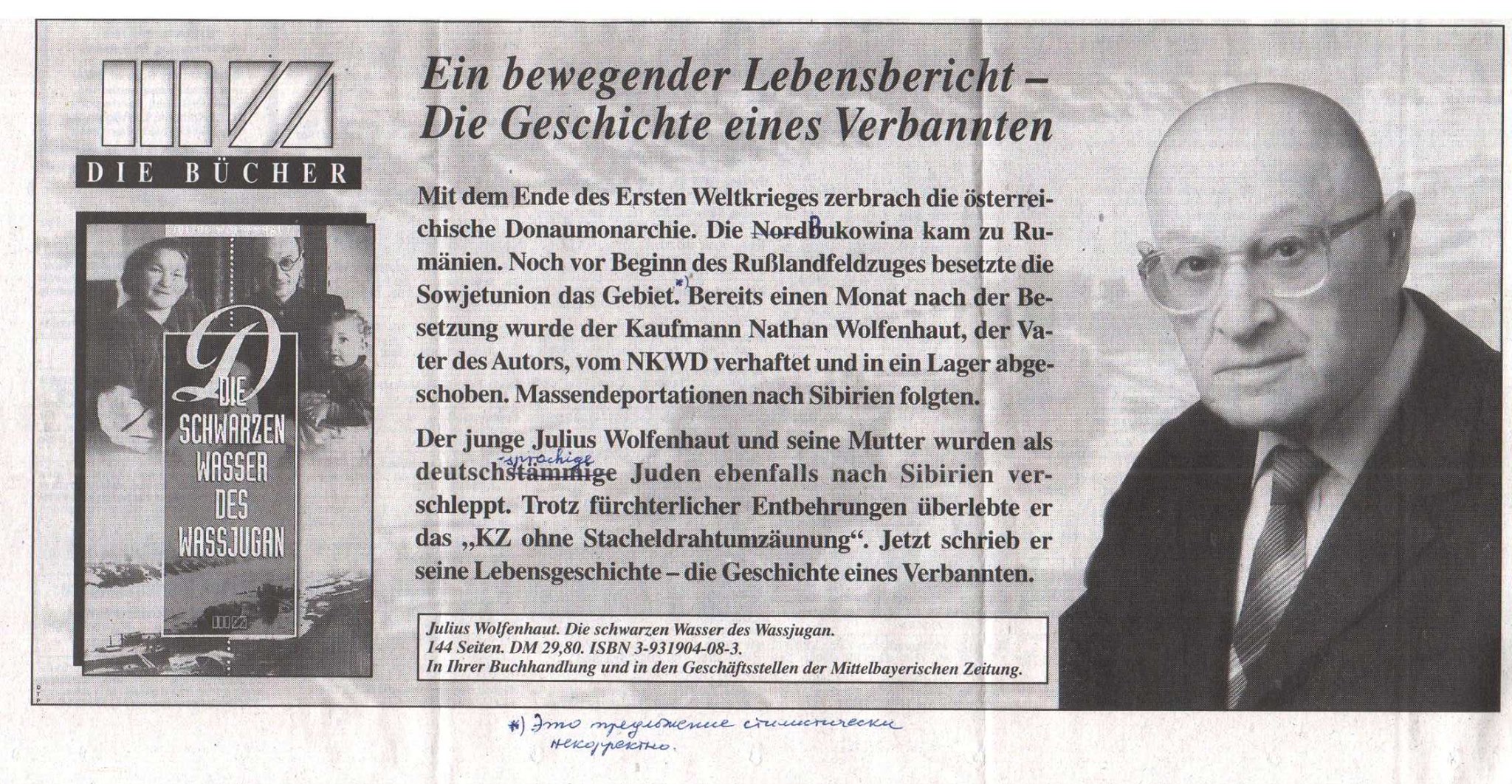 53 года ссылки – так определил свою жизнь в Сибири Юлиус Вольфенгаут, уроженец города Черновцы, откуда он был депортирован в ходе спецоперации НКВД летом 1941 года вместе с тысячами других евреев.