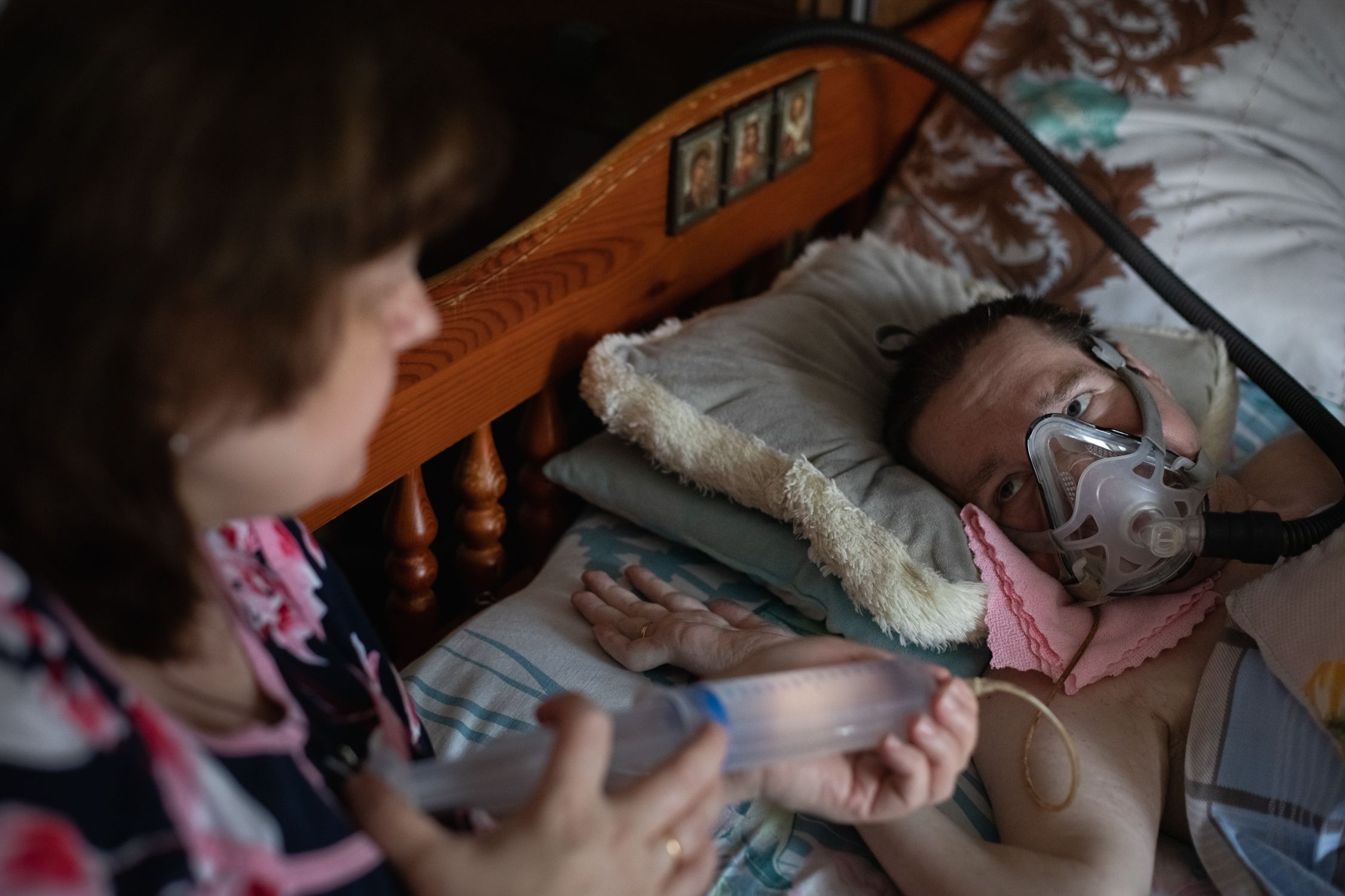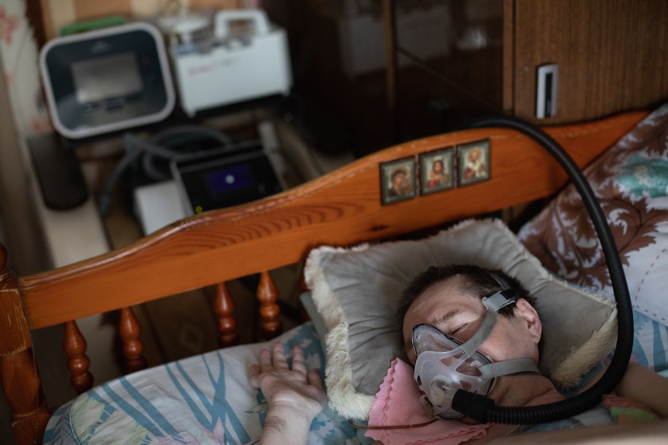 Что происходит с человеком, когда у него начинается респираторная недостаточность? Ему становится душно, привычное одеяло кажется тяжелым, он требует открыть окна нараспашку даже зимой. У нас были истории с пациентами, которые несколько месяцев спали сидя, потому что лежа было невозможно дышать. Потом мы привозим аппарат НИВЛ, подключаем человека к маске — и он через несколько секунд «вырубается». Спит сутки, открывает глаза и говорит: «Господи, я не знал, что можно высыпаться!» У человека сразу восстанавливаются силы, он чувствует себя бодрее.