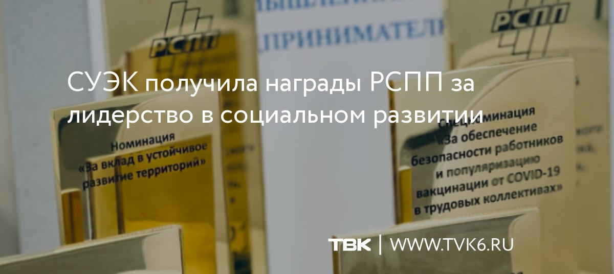 Награды Президент РСПП Александр Шохин вручил заместителю генерального директора АО «СУЭК» Сергею Григорьеву. СУЭК победила в номинации «За вклад в устойчивое развитие территорий» и в спецноминации «За обеспечение безопасности работников и популяризацию вакцинации от COVID-19 в трудовых коллективах».