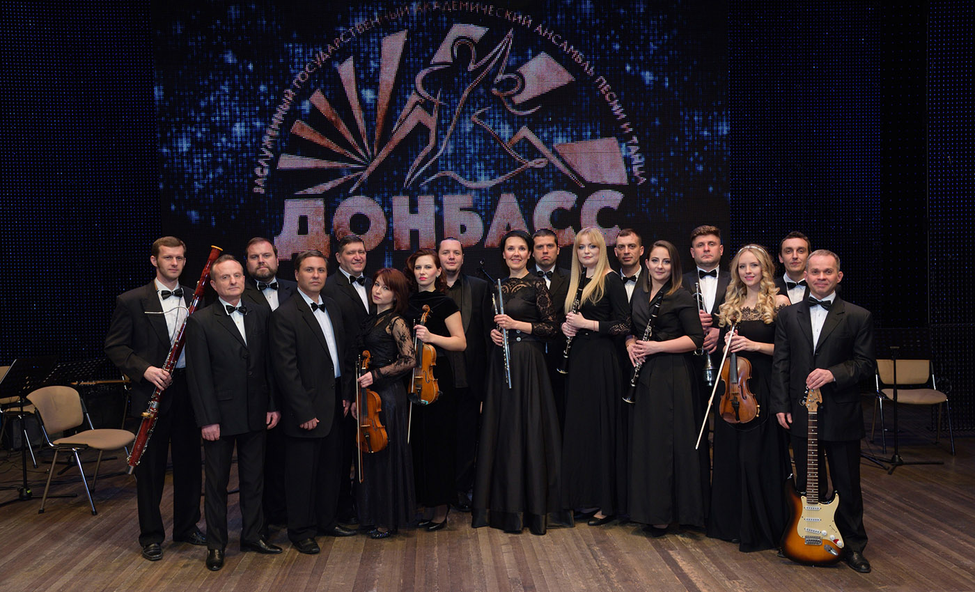 Павел Махно (в заднем ряду, четвертый справа) и ансамбль «Донбасс». Фото: личная страница «ВКонтакте»