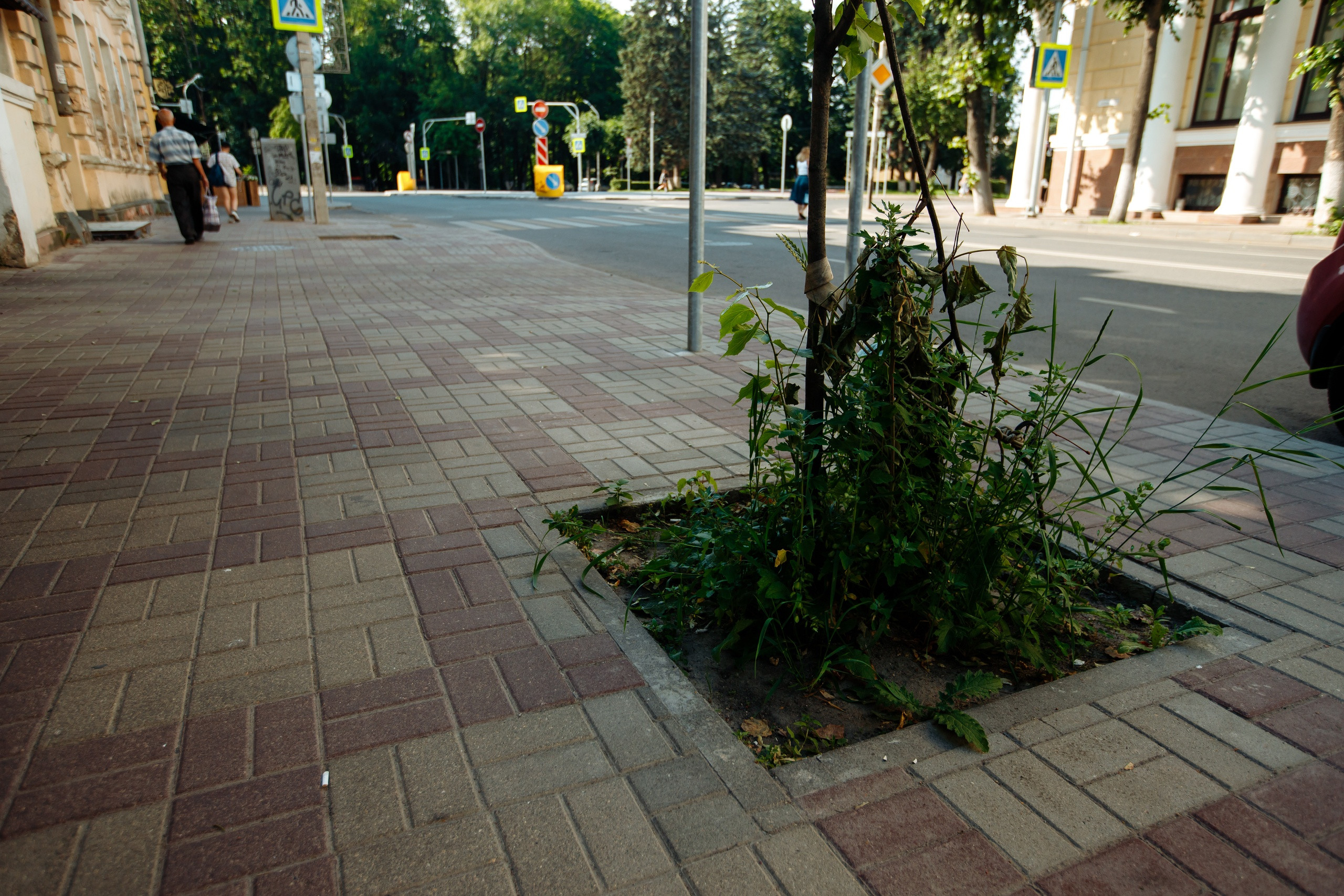 Пройдись, внимательно приглядываясь к этим "газонам", и ты удивишься, насколько все плохо. На центральных улицах практически везде либо голая мертвая земля, либо заросли сорняков. К чему это приводит? Почва, которая не поддерживается корнями растений, выветривается в виде песка, от которого потом умирают наши улицы, или вымывается дождями в виде все той же грязи у обочины, борьбу с которой мэрия проигрывает по всем фронтам.