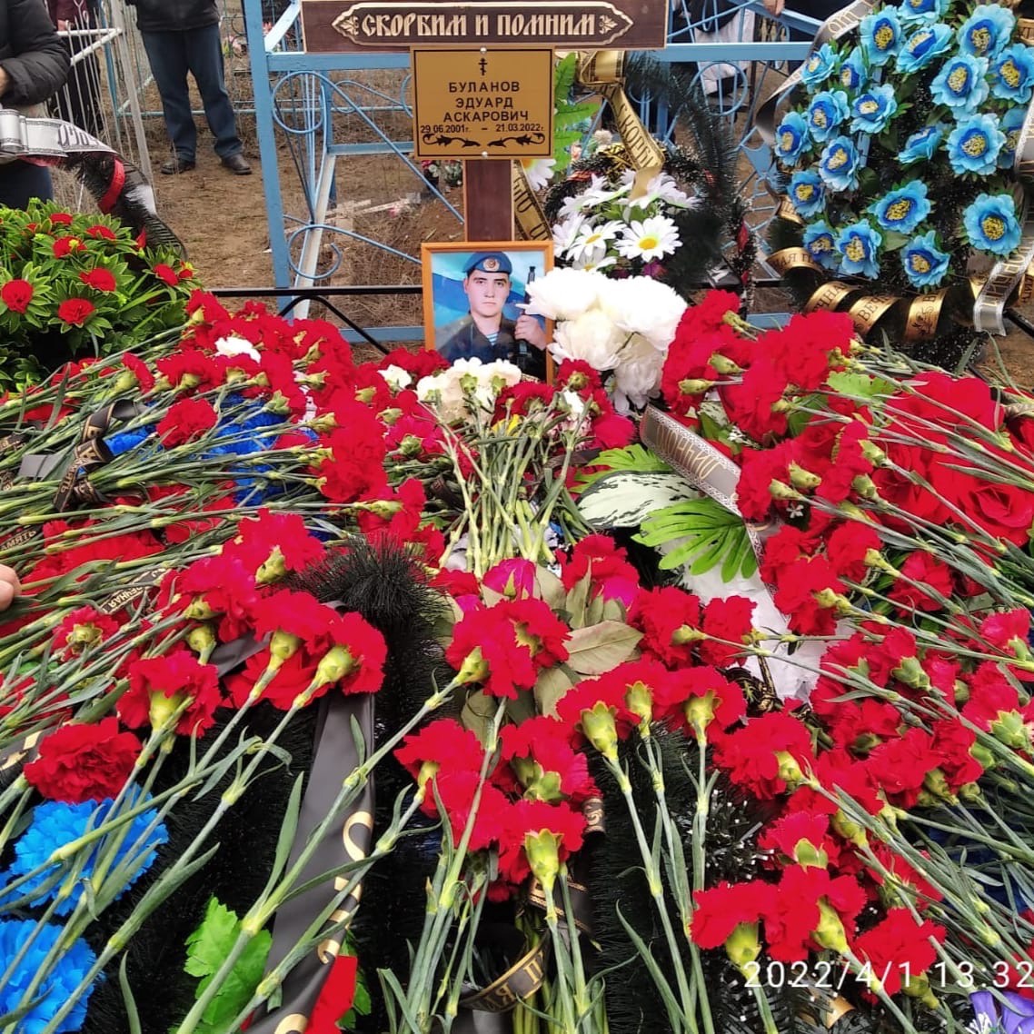 Тело Эдуарда Буланова привезли в Волгоградскую область в цинковом гробу в конце марта. Сперва родным бойца говорили, что открывать гроб нельзя. Но отец Эдика настоял: "Я хочу, чтобы моего сына открыли, мы будем перекладывать его в свой гроб". Власти пошли навстречу семье Булановых.