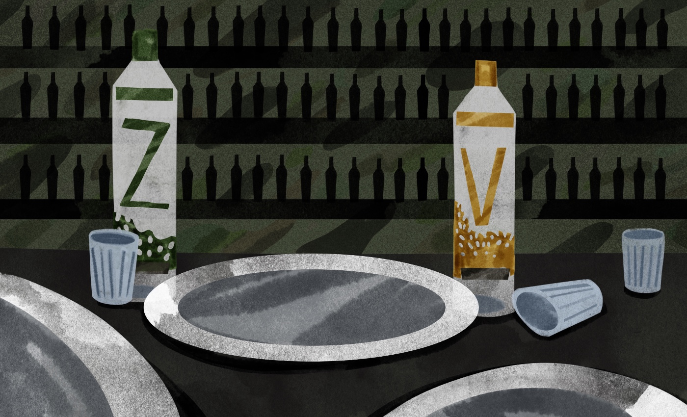 Александр говорит, что видел в кабинете две бутылки водки V: желтая этикетка с принтом под камуфляж и надписью «За правду!» под горлышком. Одну из бутылок, где еще оставался алкоголь, из кабинета забрали сотрудники полиции. «Может, экспертизу какую сделают», — неуверенно добавляет Семенов.