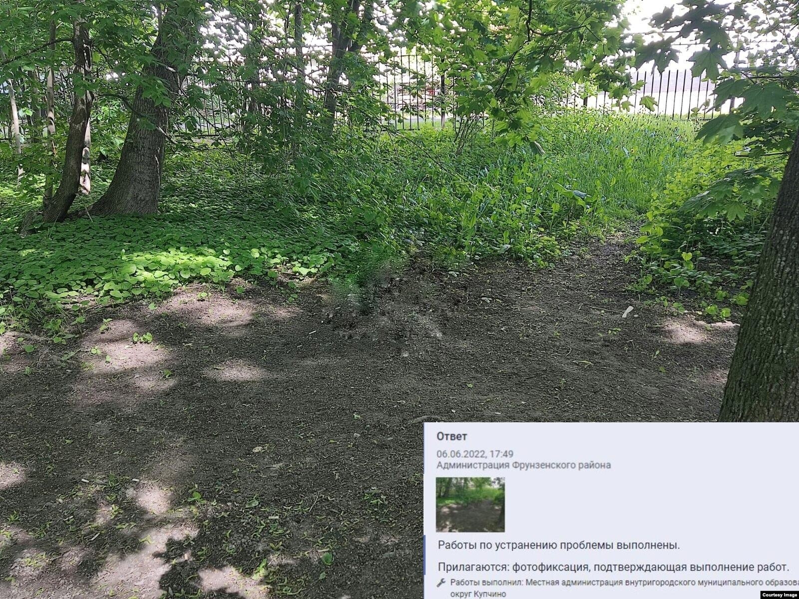 Петербург: чиновники убрали мусор на газоне с помощью фотошопа