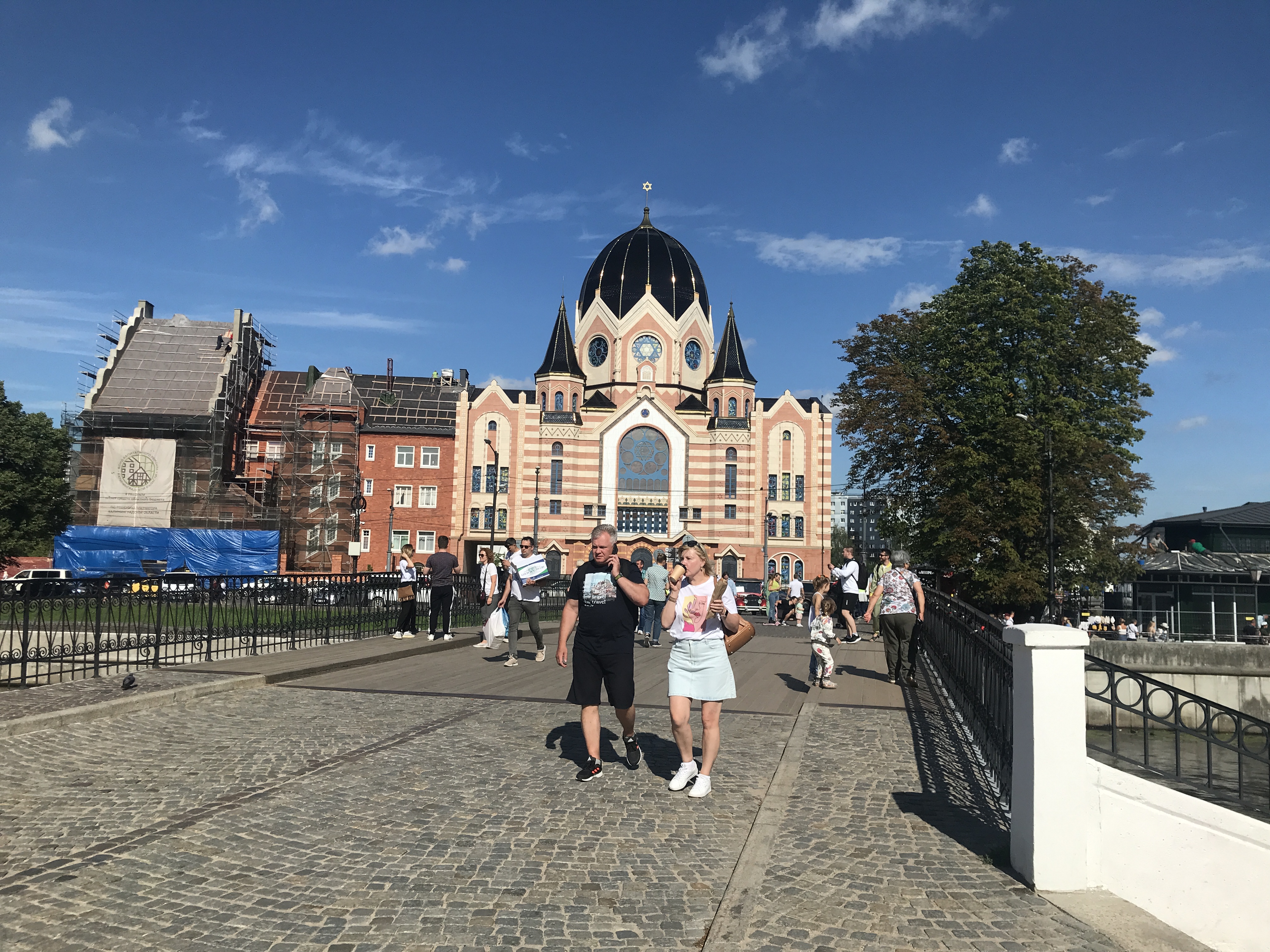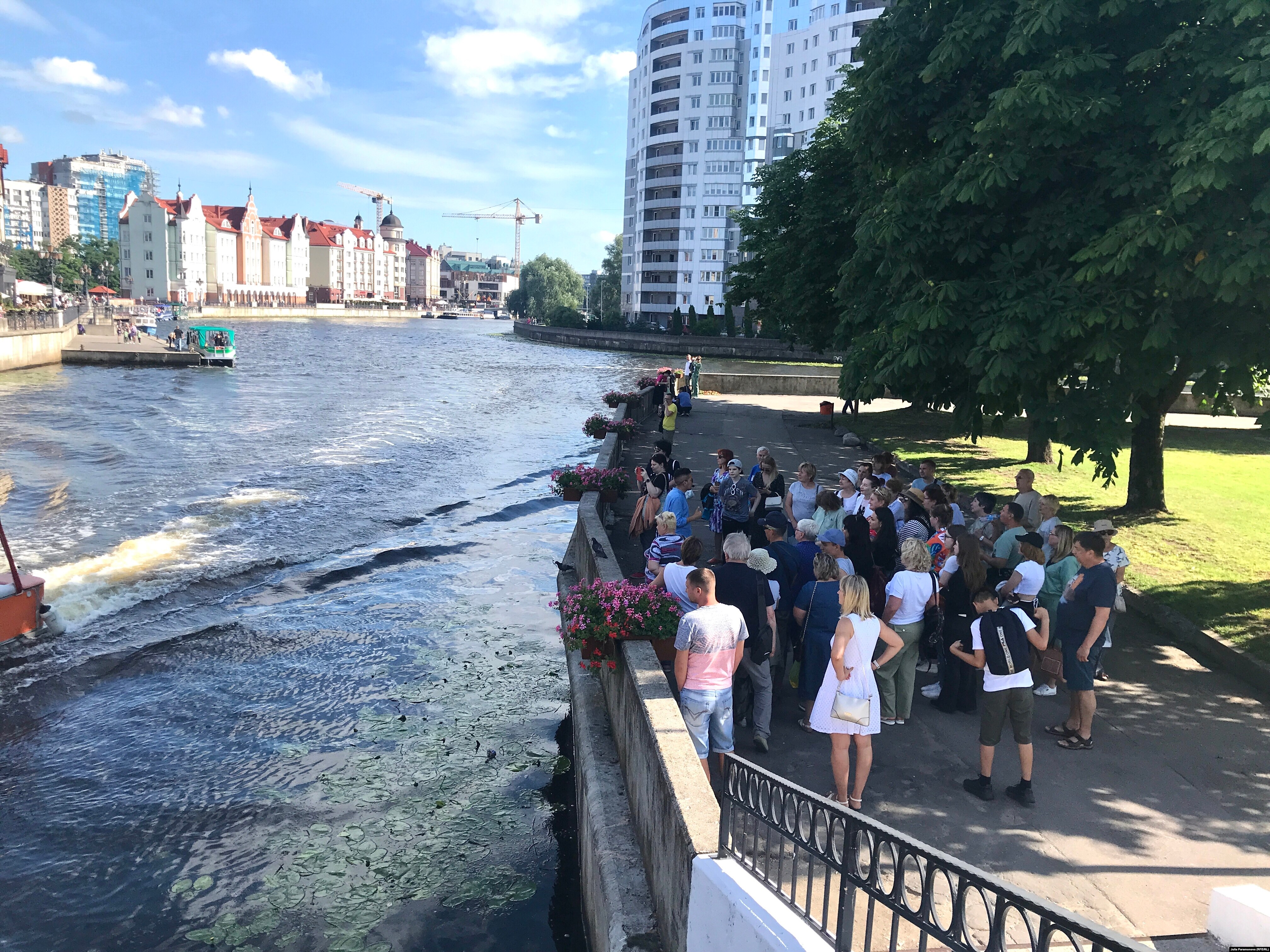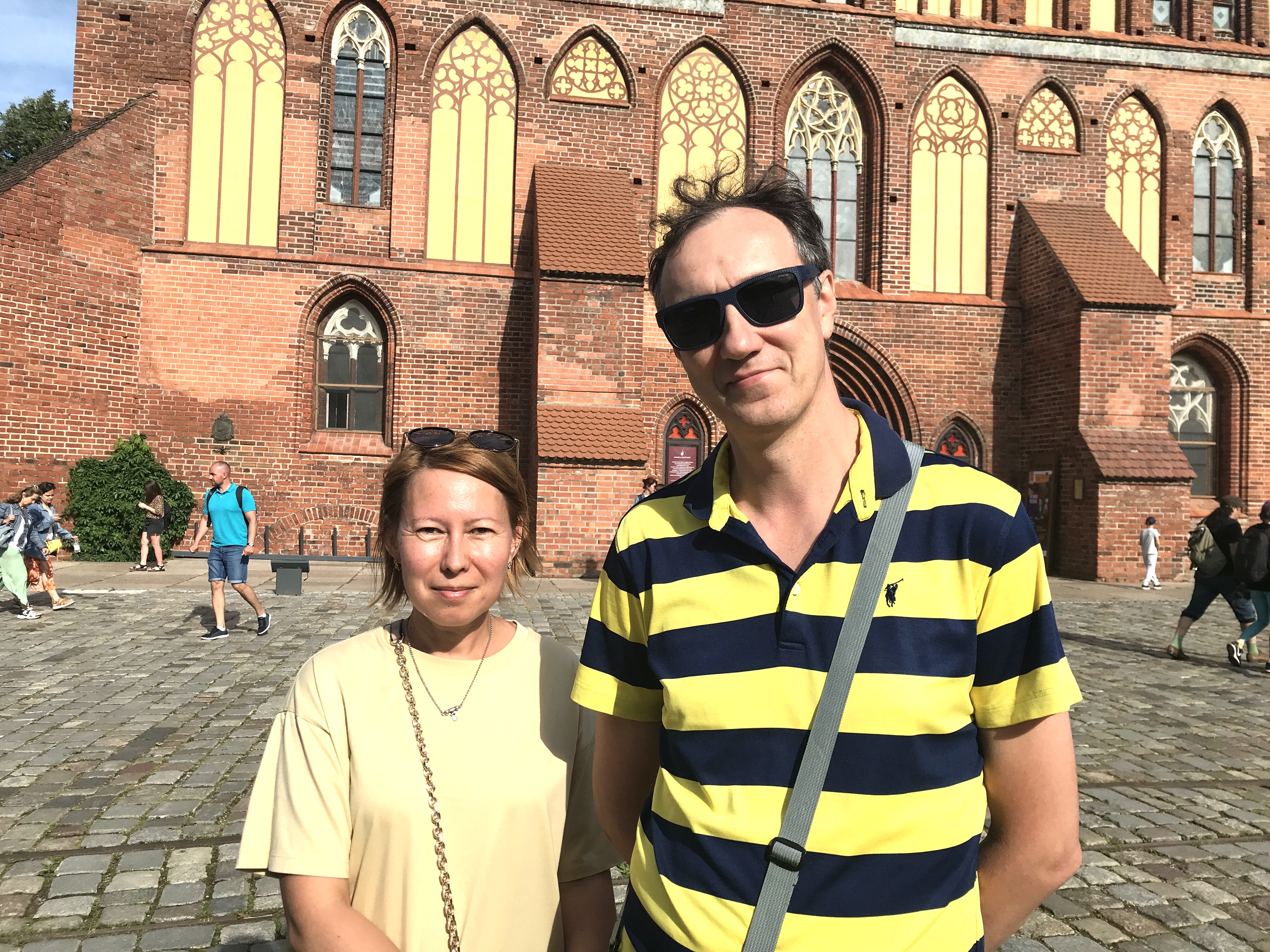 Пара гуляет на острове Канта в самом центре Калининграда. Здесь же, кажется, тысячи гостей – совсем непохоже, что турпоток снизился. Светлана и Григорий, строго говоря, уже не туристы – три недели назад они переехали в Калининград из Комсомольска-на-Амуре. Говорят, никакой блокады тут не заметили, а на востоке страны жизнь опаснее.