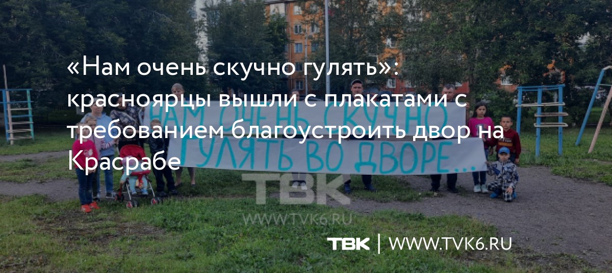 Как «ТВК Красноярск» рассказал председатель дома №159 на пр. им газеты «Красноярский рабочий», флешмоб организовала одна из семей. Мужчина пояснил, что у них во дворе негде играть детям: нет хорошей песочницы, качелей и площадки.