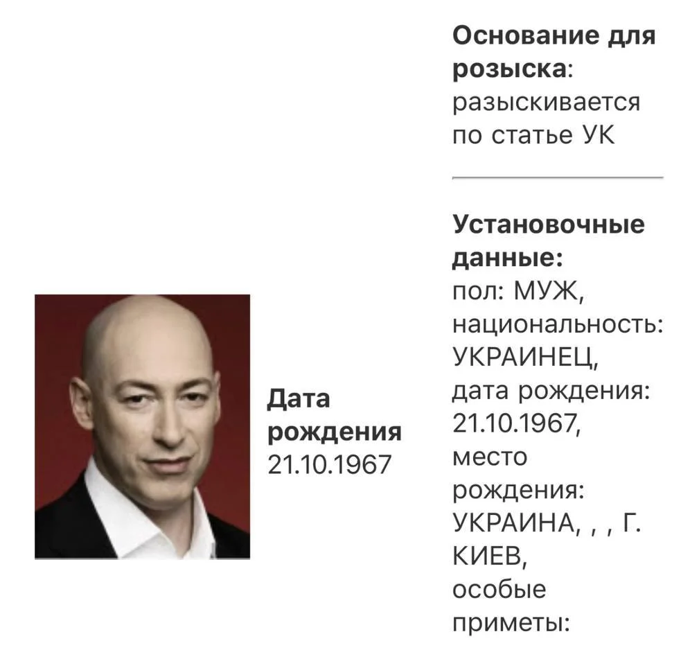 В России объявили в розыск украинского журналиста Дмитрия Гордона. Такая информация содержится в базе МВД России.