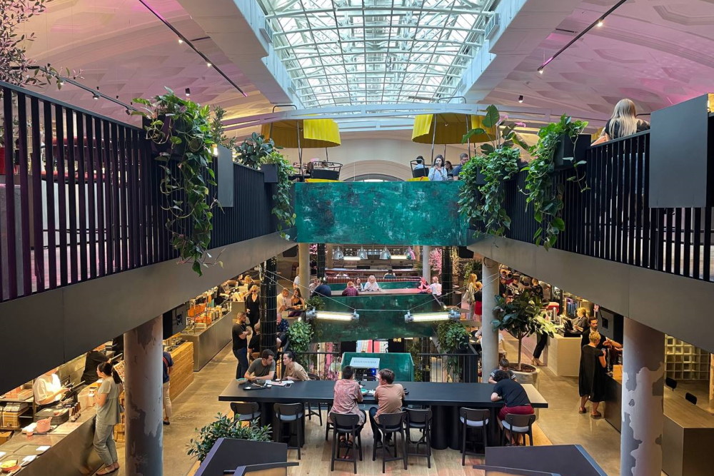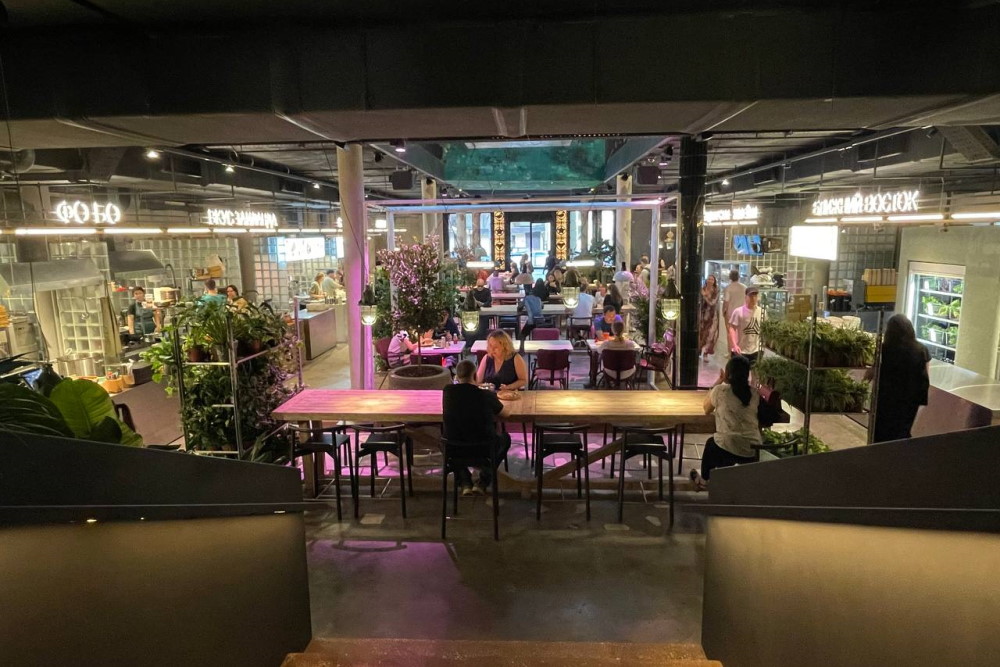 Проект и дизайн фуд-молла разработали архитекторы из DA Bureau, пространство общей площадью 2 тысячи квадратных метров разбили на три уровня. На первом разместились заведения формата fast casual, на втором — бары, на третьем — рестораны с официантами и полноценным сервисом.