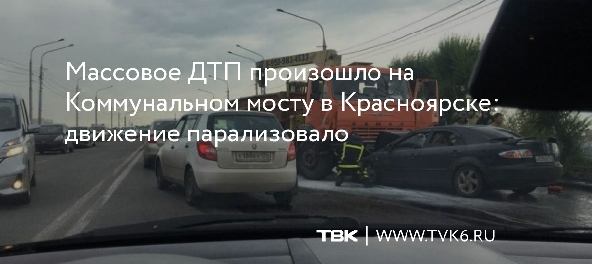 Массовое ДТП произошло на Коммунальном мосту в Красноярске: движение парализовало