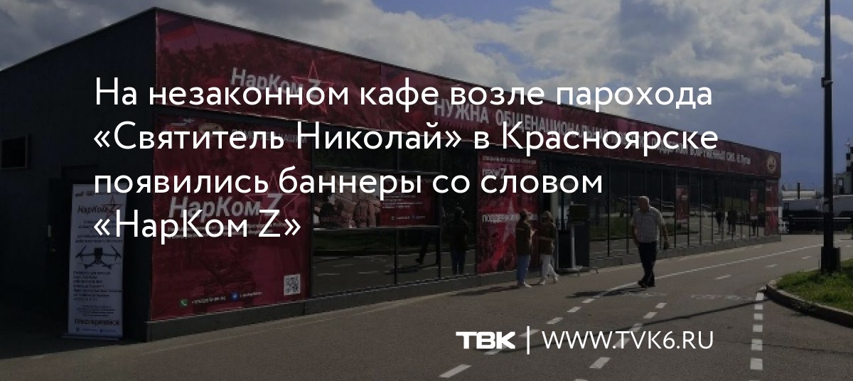 На незаконном кафе возле парохода «Святитель Николай» в Красноярске появились баннеры со словом «НарКом Z»