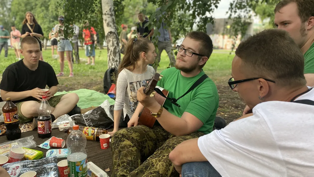В программе пикника — игра в мафию и песни под гитару. Как раз в этот момент участники начинают мелодично подпевать хиту Олега Митяева «Как здорово, что все мы здесь сегодня собрались». Алексей один из немногих, кто пришел на пикник с девушкой. Их на мероприятии — меньшинство. И то она не участница, — журналистка, а он просто наблюдатель. Но сидят вместе с остальными на пледах.