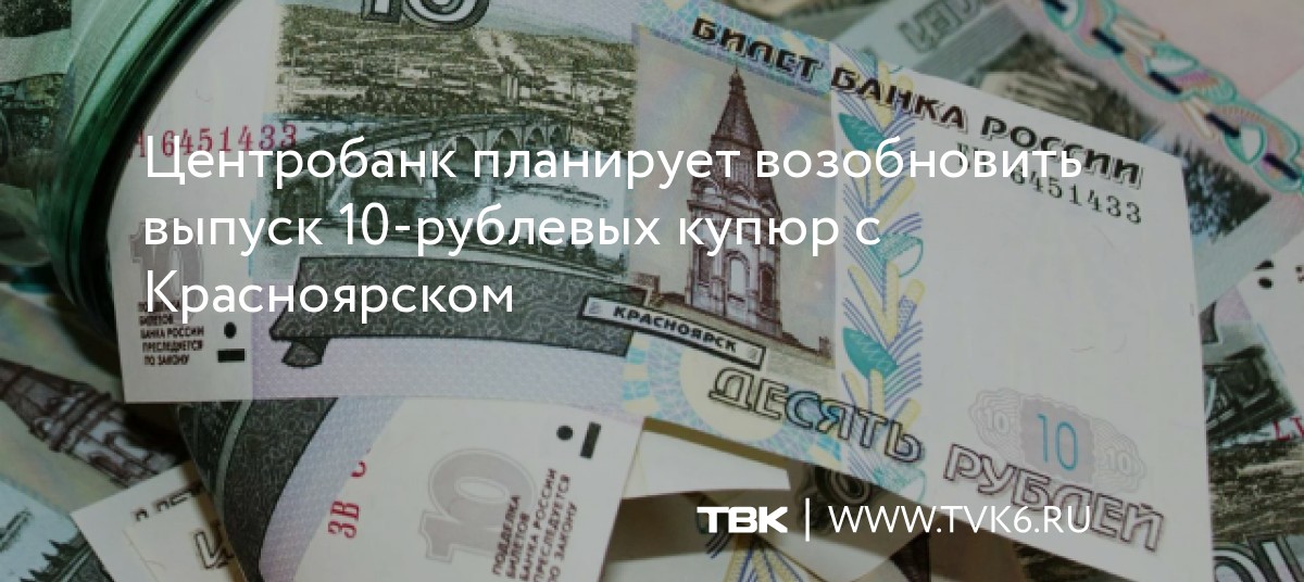 Центробанк планирует возобновить выпуск 10-рублевых купюр с Красноярском