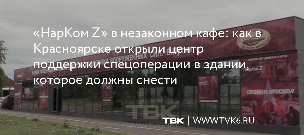 «НарКом Z» в незаконном кафе: как в Красноярске открыли центр поддержки спецоперации в здании, которое должны снести