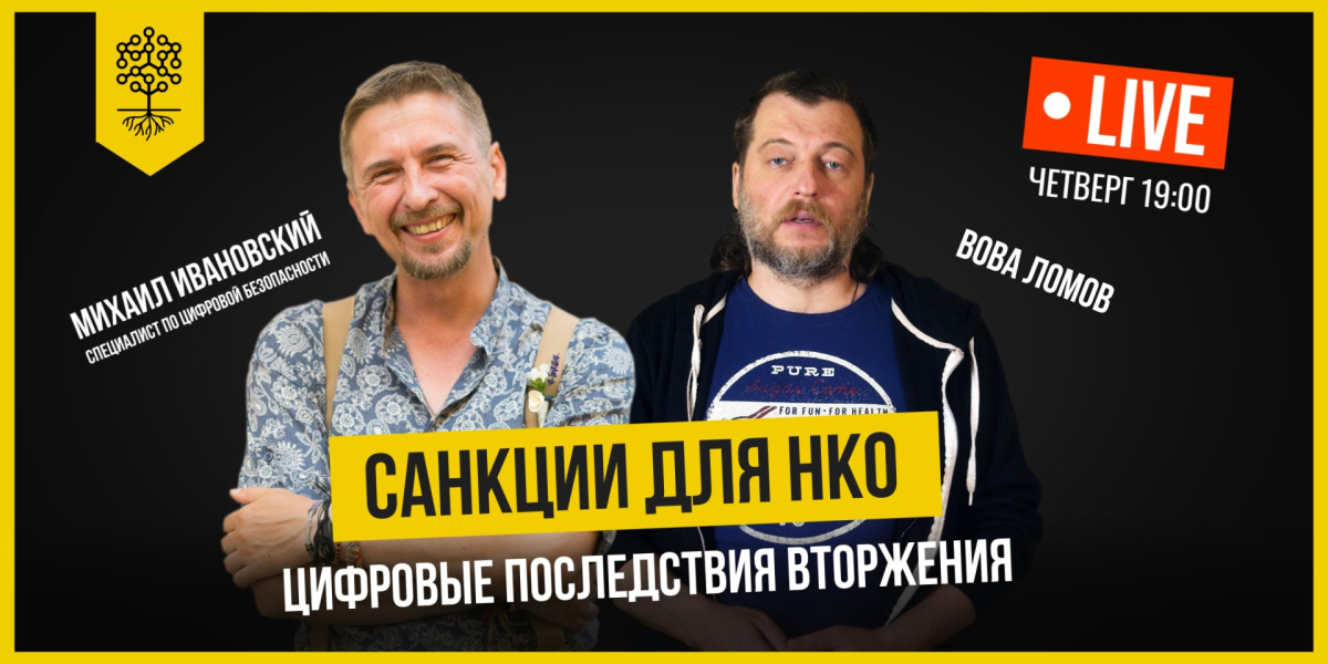 В четверг в 19:00 поговорим со специалистом по цифровой безопасности Михаилом Ивановским о цифровых последствиях санкций для некоммерческих организаций и о том, что можно сделать для их преодоления.