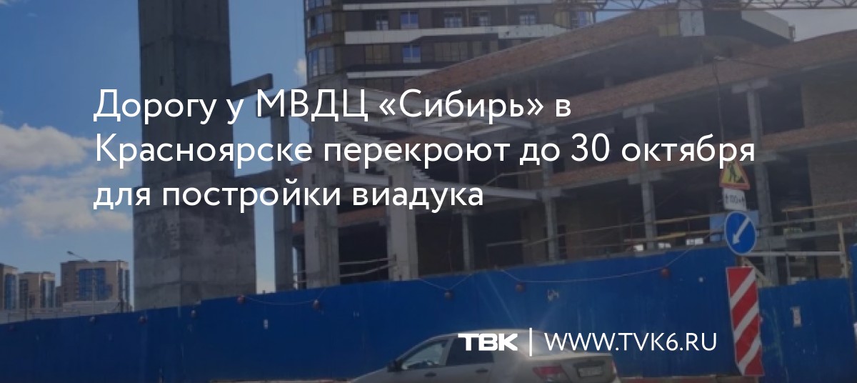 Дорогу у МВДЦ «Сибирь» в Красноярске перекроют до 30 октября для постройки виадука