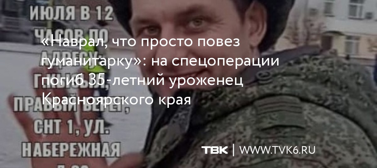 «Наврал, что просто повез гуманитарку»: на спецоперации погиб 35-летний уроженец Красноярского края