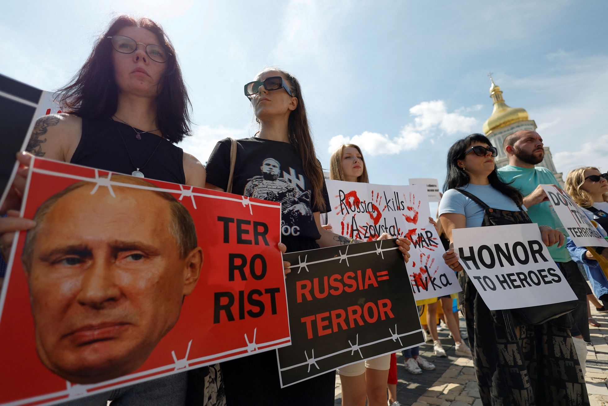Родственники бойцов украинского полка «Азов» провели митинг в Киеве с требованием признать Россию государством-спонсором терроризма. Акцию устроили после того, как 29 июля в селе Еленовка в самопровозглашенной ДНР был нанесен ракетный удар по колонии, где содержатся украинские военнопленные, в том числе из полка «Азов». Минобороны РФ заявило, что в результате обстрела погибли 50 и ранены еще 73 украинских военных. Ведомство обвиняет в атаке ВСУ. Украинская сторона говорит, что обстрел Еленовки преднамеренно организовала Россия.