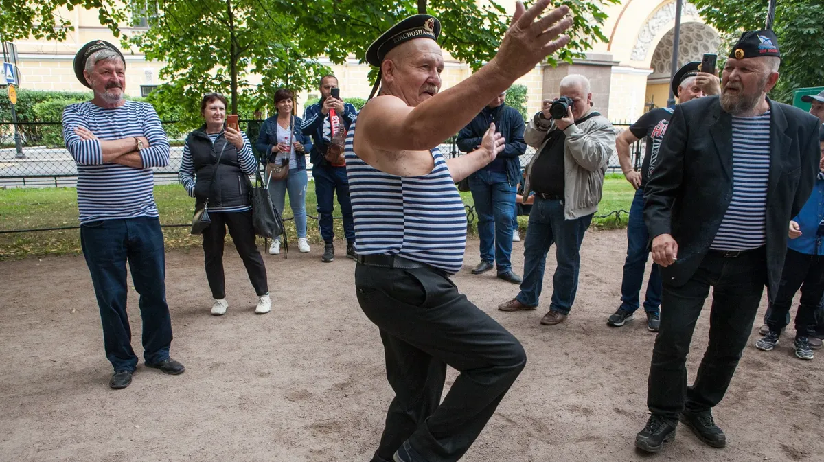 — У нас флаг. Мы одеваемся и выходим так каждый год уже 38 лет. А сейчас мы еще больше рады, что опять видим друг друга. Мы поддерживаем, а как же! Какие потери? Флот несёт потери? Это вы какую-то херню несёте.