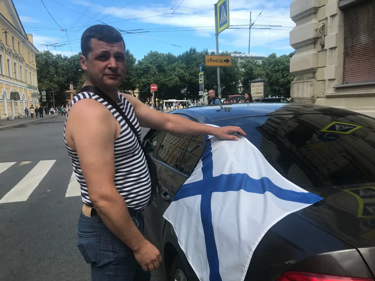 Другой зритель по имени Сергей, человек опытный, приехал к Английской набережной в половине восьмого, за три с половиной часа до начала. В 12 уже двигался обратно. Андреевский флаг, с которым стоял на набережной, он прикреплял к автомобилю.