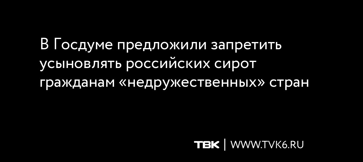 В Госдуму внесли законопроект, который предлагает запретить гражданам стран из списка «недружественных» усыновлять детей из России. Авторами инициативы стали члены ЛДПР Леонид Слуцкий и Борис Чернышов, депутаты Нина Останина (КПРФ) и Яна Лантратова («Справедливая Россия – за правду»), а также актер Дмитрий Певцов («Новые люди»).