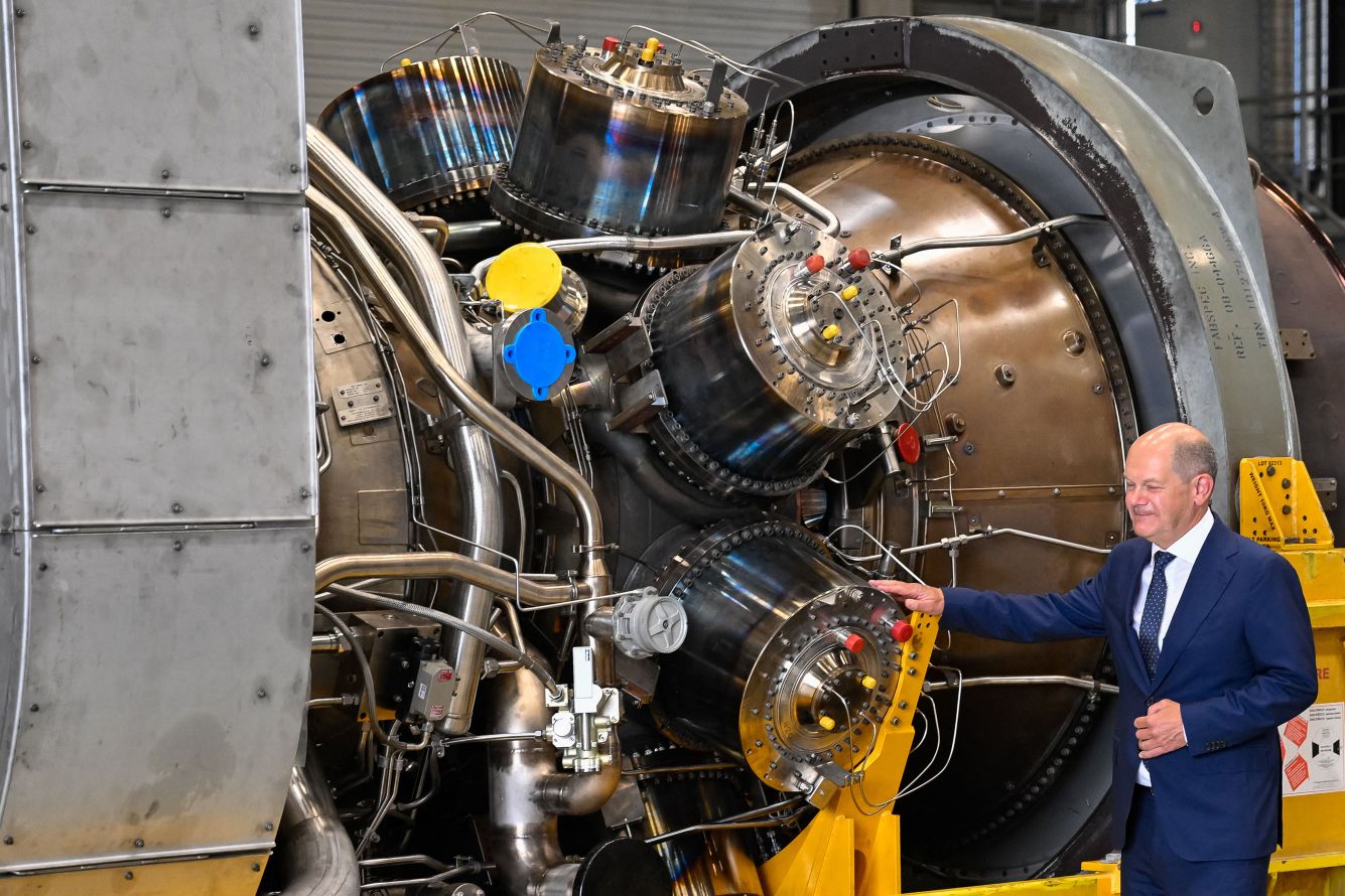 В среду, 3 августа, канцлер Германии Олаф Шольц провел одну из самых необычных пресс-конференций в своей карьере — в двух шагах от огромной газовой турбины производства Siemens, предназначенной для газопровода «Северный поток — 1». До этого он не менее получаса осматривал турбину, пытался заглянуть внутрь и даже провел странную фотосессию, позируя на ее фоне. Саму двадцатитонную турбину, изготовленную на базе авиационного двигателя и предназначенную для закачивания газа в газопровод, он назвал «впечатляющей технической штуковиной» и достижением немецких инженеров.