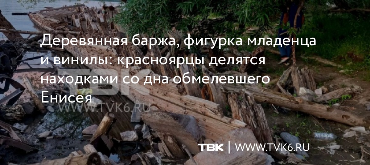 Деревянная баржа, фигурка младенца и винилы: красноярцы делятся находками со дна обмелевшего Енисея
