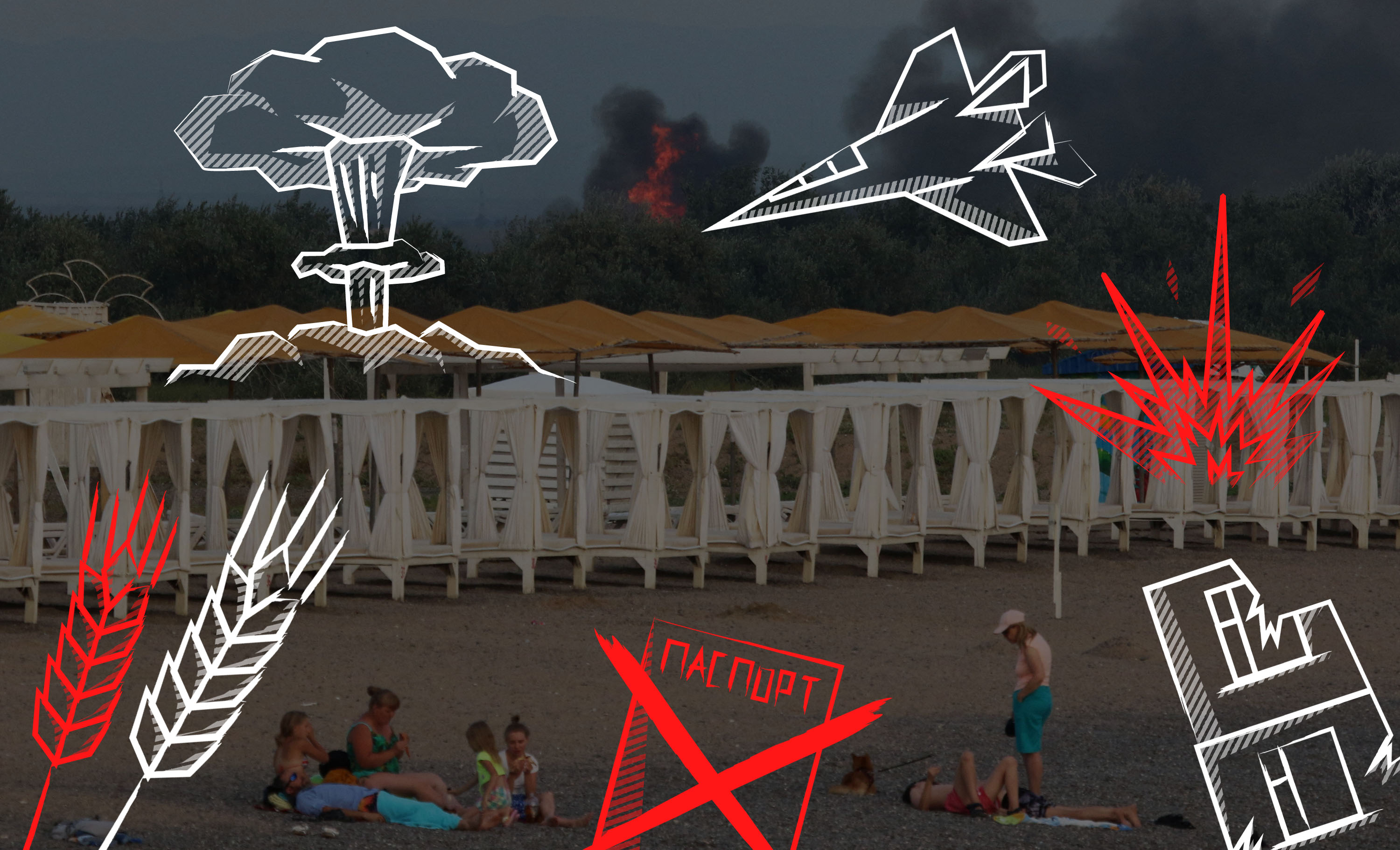 В Крыму произошла серия мощных взрывов, Владимир Зеленский призвал Европу закрыть границы для всех россиян, а Украина приостановила транзит российской нефти в Венгрию, Чехию и Словакию. Власти Калининградской области говорят, что лимиты на перевозку нефти, древесины и удобрений в регион через Литву исчерпаны, восстановлением разрушенного Мариуполя займутся компании, связанные с российскими чиновниками и силовиками. «Медиазона» выбрала главное из всего, что происходило за день на войне и в связи с войной.