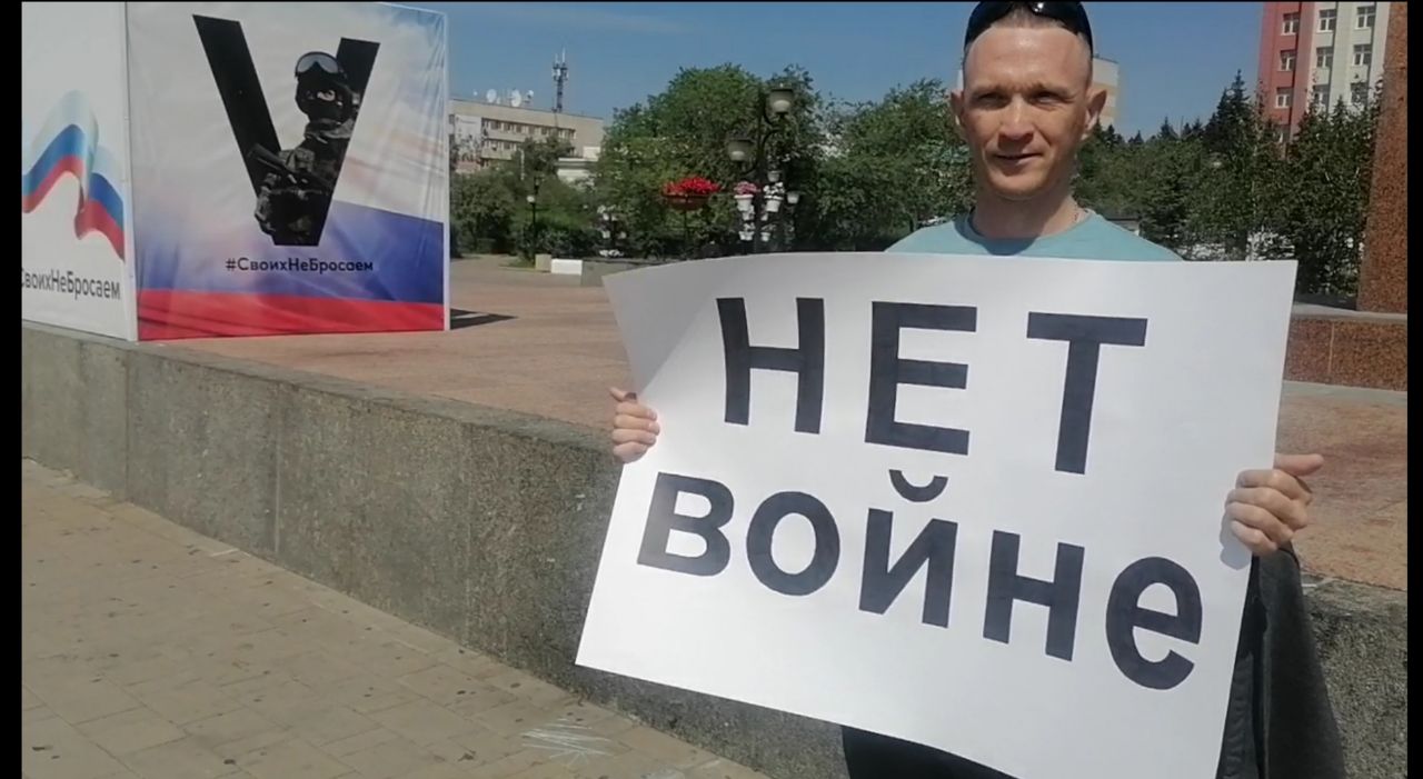 Неделю назад Перевалов выходил на антивоенный пикет в Чите с плакатом "Миру Мир". Он простоял три часа - полицейский проверял его документы и записывал контакты в течение часа, но задержания не было.