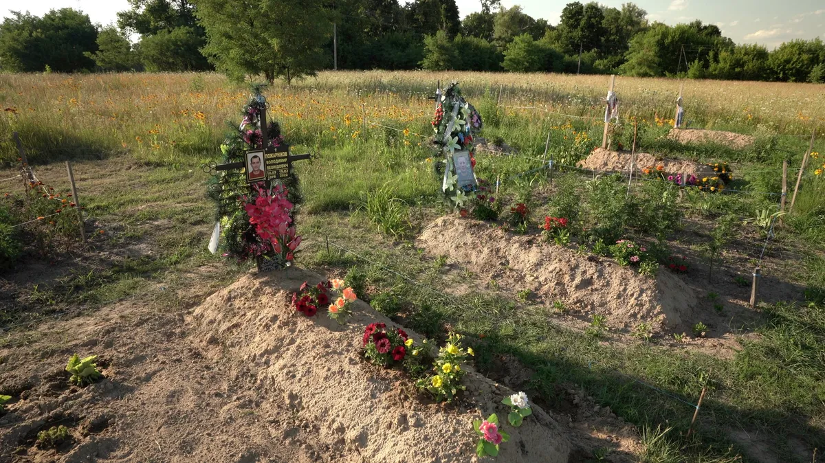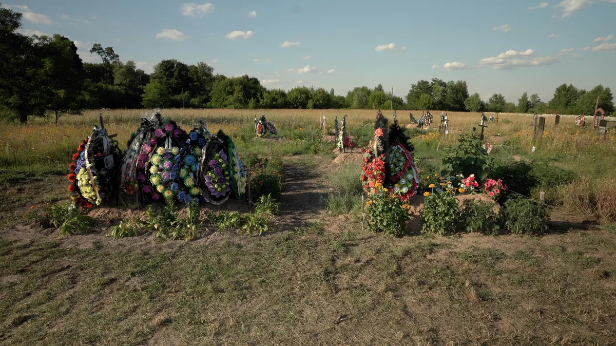 Через два дня женщинам и соседу удалось прикопать Виталия и Вадима прямо во дворах их домов. Мужчин эксгумировали и перезахоронили только после выхода российских войск. За домом, на месте первой могилы супруга, Елена Кибукевич посадила тую.
