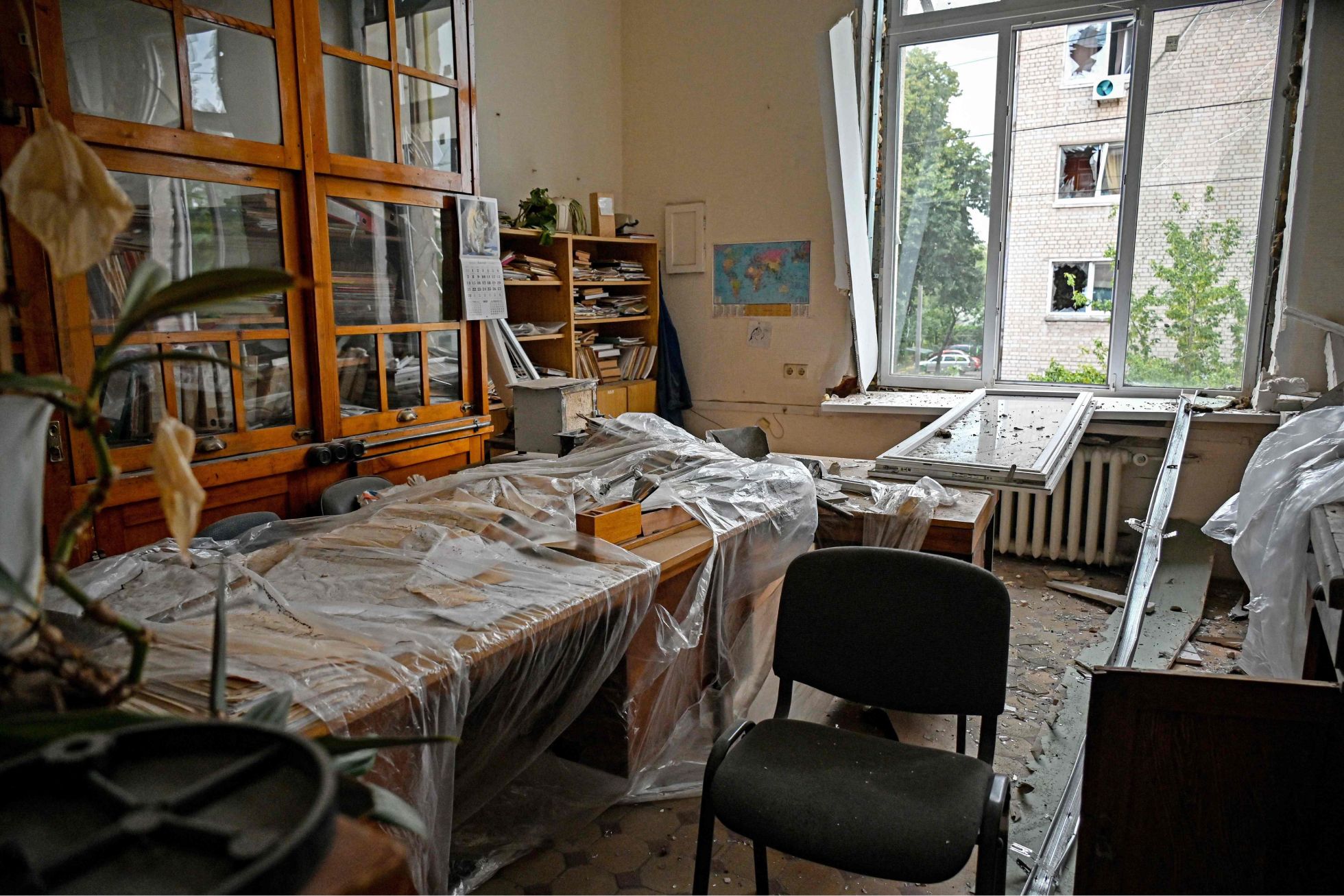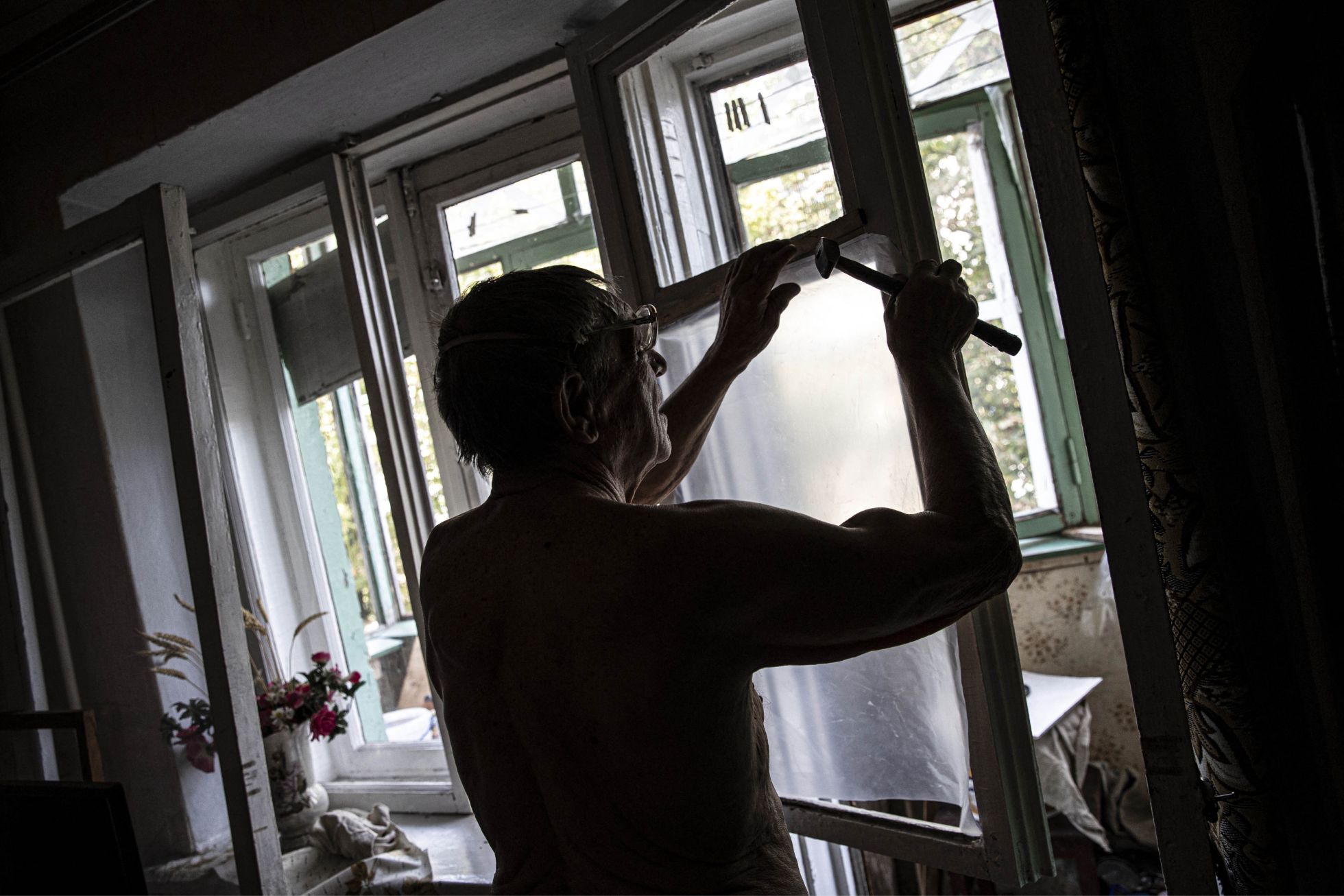 Славянск в Донецкой области находится в центре противостояния российских и украинских сил. Город постоянно подвергается обстрелам. На фото житель Славянска, остающийся в городе несмотря на объявленную в Донецкой области обязательную эвакуацию, пытается починить окно после очередного обстрела.