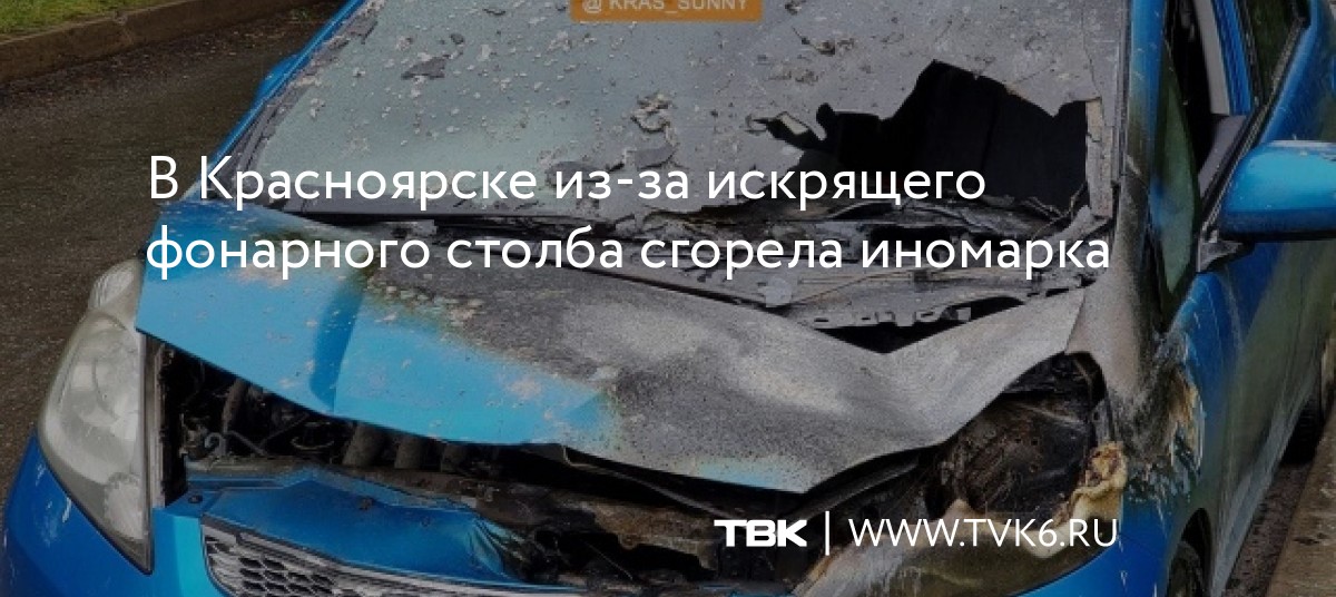 В Красноярске из-за искрящего фонарного столба сгорела иномарка